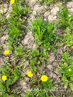 Lähdimme kävelemään viittojen osoittamaan suuntaan. Tie päättyi jonkun kaivon luokse ja siinä oli laudat laitettu yli ojan. Näkyi heinikossa polku, jota mekin lähdimme kulkemaan. Sukat housujen punttien päälle, punkkien torjunta, ja kulku jatkui. Heinikko oli sen verran korkea, että siirryimme pellon reunalle. Katsoimme, että pellossa ei kasvanut muuta kuin voikukkaa ja joitain muita kasveja.