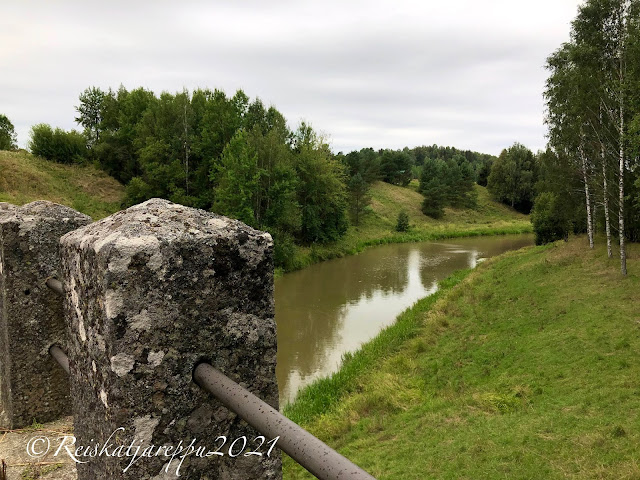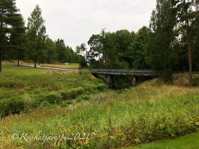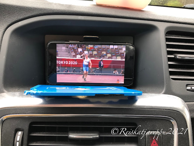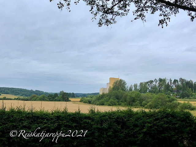Pidettiin evästauko kirkon parkkipaikalla ja olympialaiset olivat menossa. Jännittävä keihäskisa ja onneksi autossa on tv (hih). Kiva oli katsella, vaikka keihäässä ei kultaa saatukaan Suomeen. Kestimme pettymyksen ja jatkoimme matkaa. Kirkon lähellä on Kalliolaakson linna. Katsoimme, että siellä on ravintola/kahvila ja käsityömyymälä. Piipahdimme linnan pihalla, mutta parkkipaikalla oli paljon autoja ja lisää saapui juhlapukuisine kyytiläisineen. Arvattavasti juhlat, joten annoimme heidän jäädä juhlimaan rauhassa. Voimme käydä siellä toisen kerran.