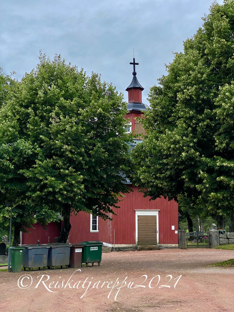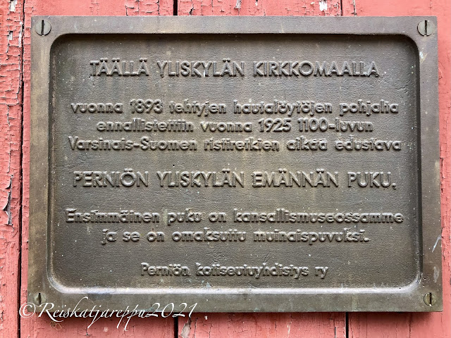 Voi miten kivalle näytti kirkko ja kirkon alue. Siellä se seisoi mäen päällä punaisena kertoen kyläläisille, että täällä sitä vielä ollaan. Kirkko sijaitsee Perniön pitäjän ensimmäisen kirkon paikalla. Emme arvanneetkaan miten historialliselle paikalle saavuimme. Yliskylä on on ollut historian ajansaatossa rannikkoseutua ja Perniönjoki on kylän kohdalla laskenut mereen. Kuninkaantie on kulkenut Salosta Perniönjokea myötäillen. Yliskylän kirkko sijaitsee vain muutaman sadan metrin nykyisen Kuninkaantien linjauksesta.