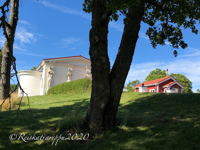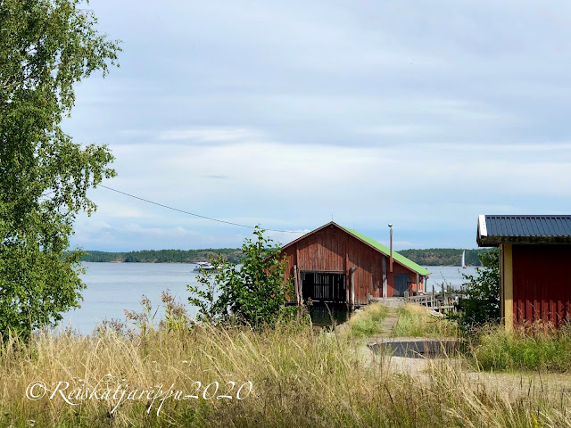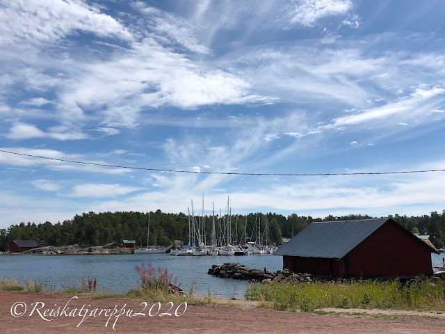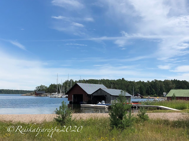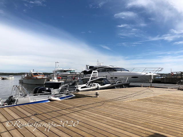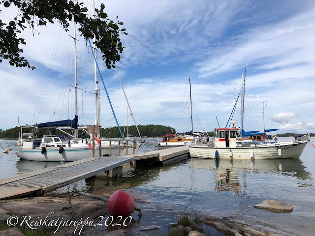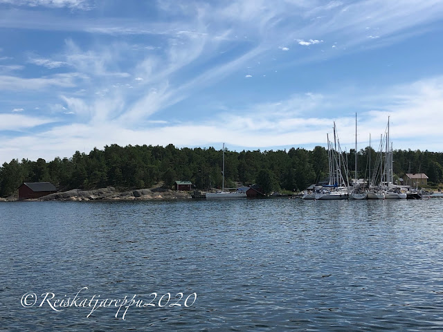 Saimme istuskella varjossa katselemassa veneliikennettä, joita lähti ja uusia tuli lähteineiden tilalle. Yllättävän vilkasta liikennettä. Saattoi olla komella ilmalla osuutta asiaan. Sekä saari on niin viehättävä kokonaisuus.