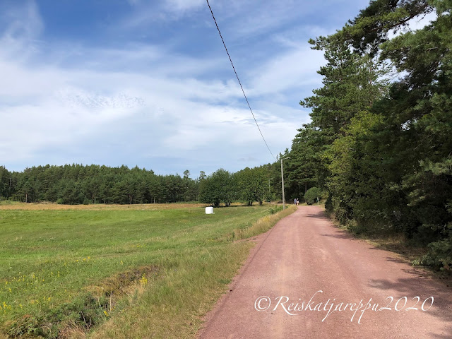 Ilma muuttui niin helteiseksi, että olo oli jo tukala, ei tuulen virettä tuntunut missään. Emme jatkaneet matkaa Sandvikin hiekkarannalle, vaan käännyimme takaisin. Ihmettelette, että eikö uiminen olisi helpottanut oloa? Toki, mutta ne uimavermeet olivat majapaikassamme. Jatkoimme matkaa Keisarin satamaan. Venäjän tsaari Aleksanteri III vieraili Högsårassa neljätoista kertaa. Siitä satama on saanut nimensä.