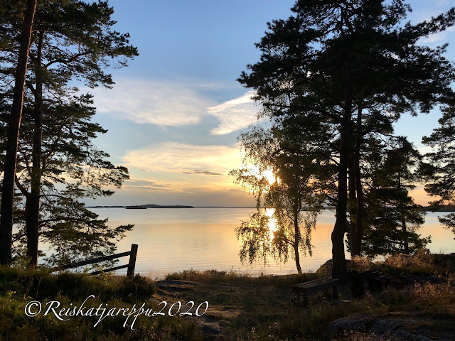 Reissuajat matkasivat mökille nauttimaan Suomen merellisestä luonnosta, ihailemaan maisemaa, nauttimaan saunasta ja laineiden liplatuksesta. Aauringonlaskusta. Voi, että nautimme. Mikä on kauniimpaa kuin merenhorisontin taakse laskeva aurinko, kaikkine väreineen. Siihen oli hyvä päivä päättää.