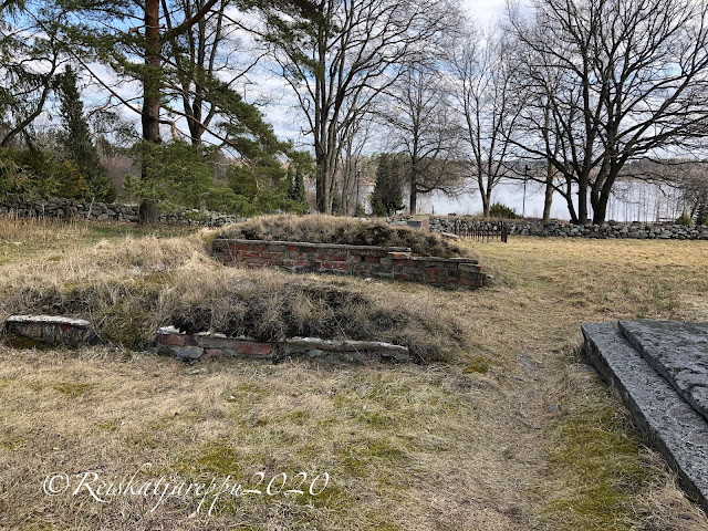 Kirkon ympärillä on ollut vanha hautausmaa. Muutama vanha muistomerkki kertoo , että olemme kalmistoaluella. Muuten kirkon ympäristö kiviaidan sisällä on tyhjää, vain kulottunutta heinää.