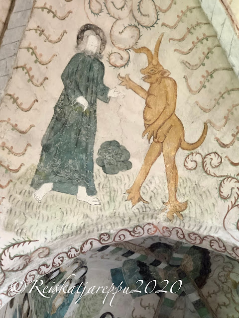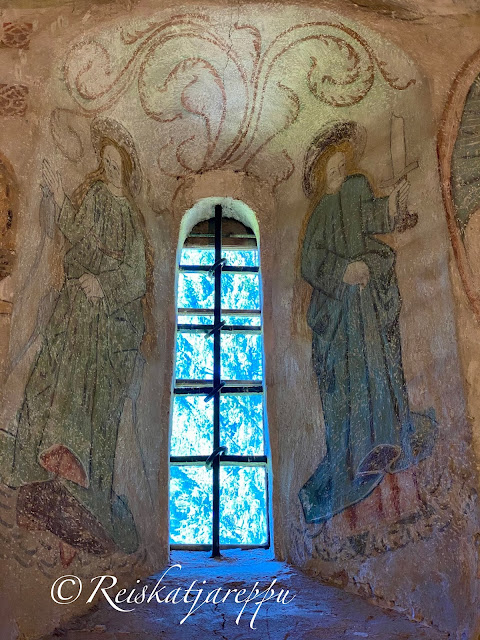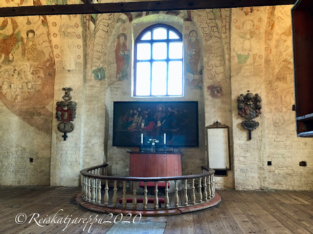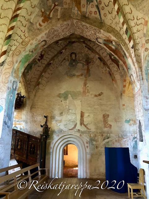 Pälkäneelle ajaessamme ajoimme Hattulan vanhan kirkon ohitse ja netistä huomasimme, että kirkko toimii tiekirkkona sekä sattumoisin sattui olemaan auki. Kotimatkalla Pälkäneeltä pääsimme vihdoin kirkon sisälle ja tutustumaan tähän vähän ulkoapäin hylätyn, mutta wau, sisältäpäin niin upean kirkon salaisuuksiin. Miten kaunis, miten hyvin säilyneet kalkkimaalaukset kiersivät kirkon seiniä, kattoja, joka paikkaa. Täällä ovat Suomen kirkkojen laajimmat seinämaalaukset. Tällä kertaa emme kiertäneet kirkkoa ulkopuolelta, vaan nyt näytettävät kuvat ovat aiemmilta käynneiltämme. Varoituksen sana, nyt on kuvatykitystä, mutta kuvat kertovat enemmän.