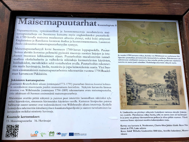 Kartanopuisto on suunniteltu 1600-luvulla engantilaiseen tyyliin. Joentörmällä on ollut kasvihuoneita 1900-luvulle saakka. Puisto jatkuu metsäpuistona seuraten Loimijokea. Metsäpuistossa ovat viimeisen leposijansa saaneet pormestari von Willebrant vaimoineen. Me emme käyneet haudalla, kun maa oli sen verran löllöinen.