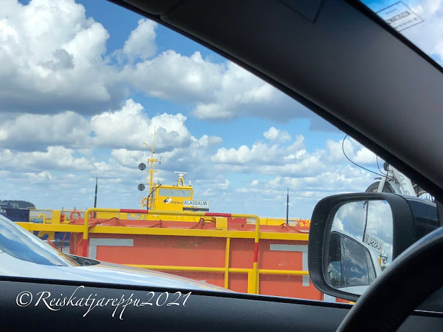 Kirkolta matkasimme Alassalmen lossille, jolta päästään Manamasalon puolelle. Sinne saavuttuamme näimme vain lossin perävalot. Myöhästyimme hetken. Harmitti. Lapsoset pääsivät heittelemään leipäkiviä. Saimme ihailla Oulujärven maisemia ja samalla komentaa lapsosia heidän puuhistaan. Onneksi näin kesäaikana lossi kulkee edestakaisin taukoja lukuunottamatta. Normaalisti vain tasa-ja puolitunnein.