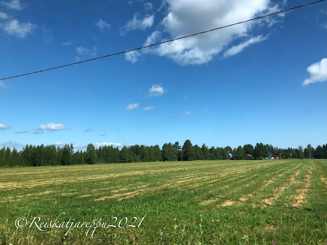 Kesälomalla Kainuussa. Helteiset säät jatkuvat ja paahdetta riittää, vaikka pilviä näkyy taivaalla ja jonkun verran tuultakin on, mutta se ei paljoa helpota. Ilmastoidussa autossa on aivan miellyttävä matkustaa ja Kajaanista lähdimme pojan, teinipojan ja pikkupojan kanssa viettämään laatuaikaa autossa ja vähän muutenkin.