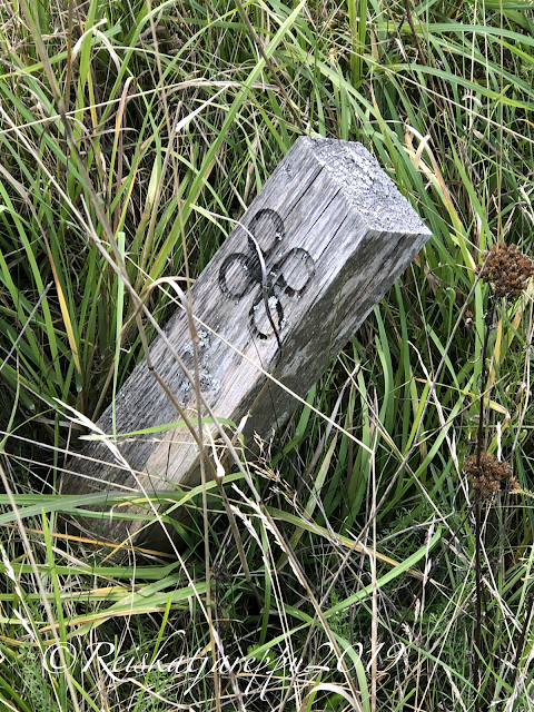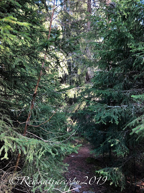 Rikalan muinaispolku, sekin löytyi etsimisen jälkeen, ruohottunut, Hannun vaakunoin, pienet puiset merkit kallellaan, jotka yrittivät johdattaa meitä kalmistoille.