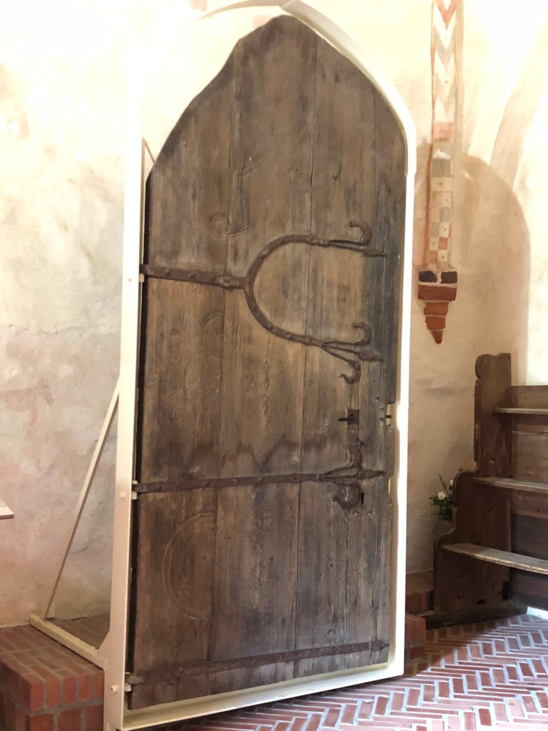 Kirkkoon astuessa voi havaita jo keskiaikaisuuden. Kirkon ovet, asehuoneen sisäänkäynnin, runkohuoneen pääsisäänkäynnin ja sakaristonoven ovilevyt ovat keskiajalta säilyneitä. Asehuonetta koristaa maalaukset seinillä. Ovilevyjä koristaa kauniit takorautaiset taonnat ja saranat.