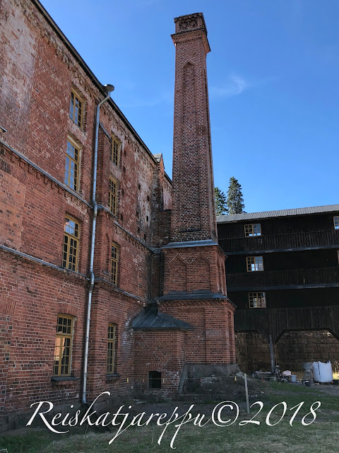 Kartano, joka olikin pytinki, tietenkin ja muut hienot rakennukset. Tämä alue ei kuitenkaan tehnyt meihin Wau-ilmiötä, vaikka rakennukset olivat hienoa arkkitehtuuria ja taidolla tehtyjä. Padottu koski kuohuineen, jota emme päässeet kunnolla kuvaamaan. Tiiliset, äärettömän kauniit tehdasrakennukset.