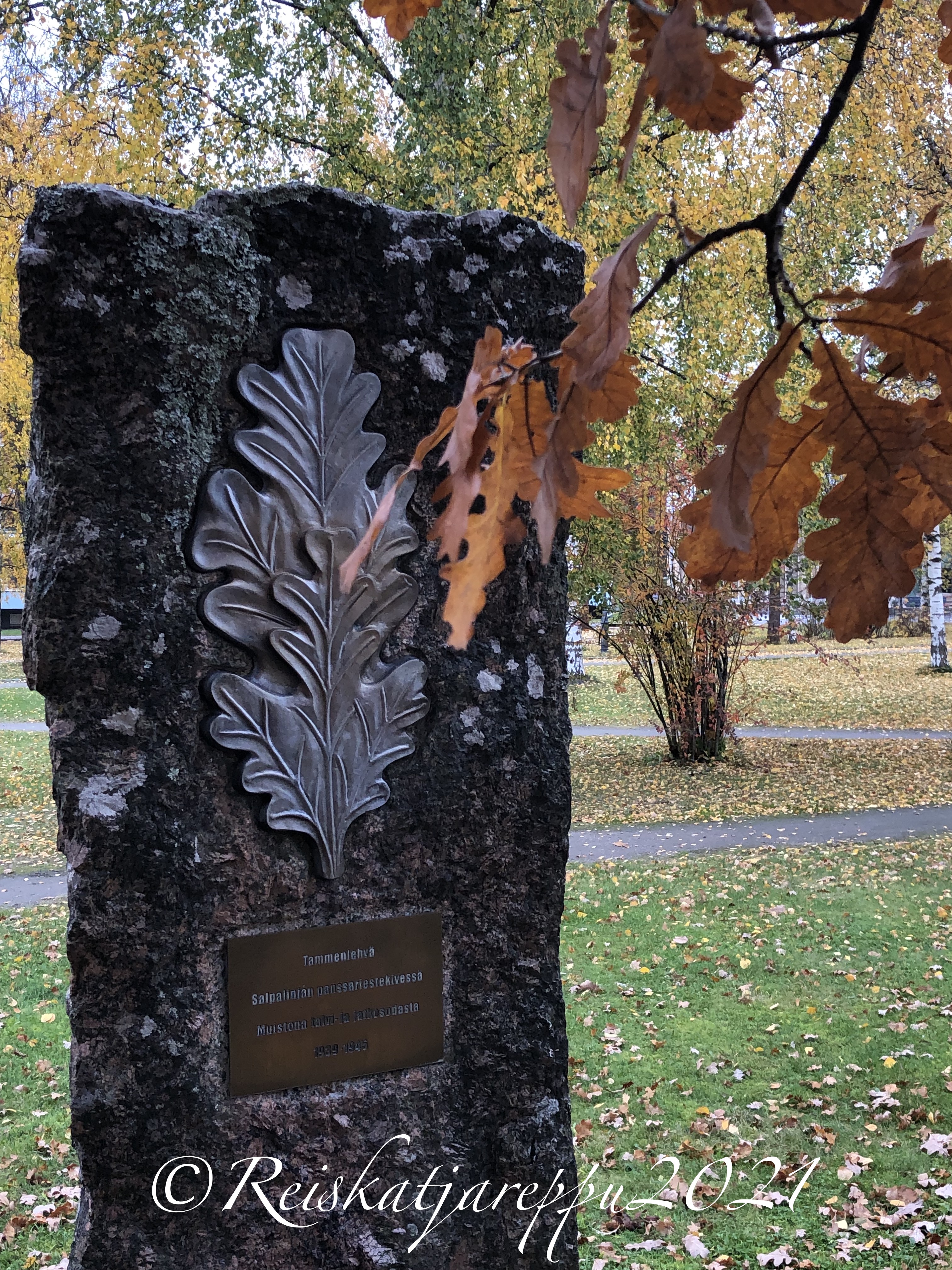Sekä oikealla Tammenlehvä- Talvi- ja jatkosodan muistomerkki vuodelta 2001.