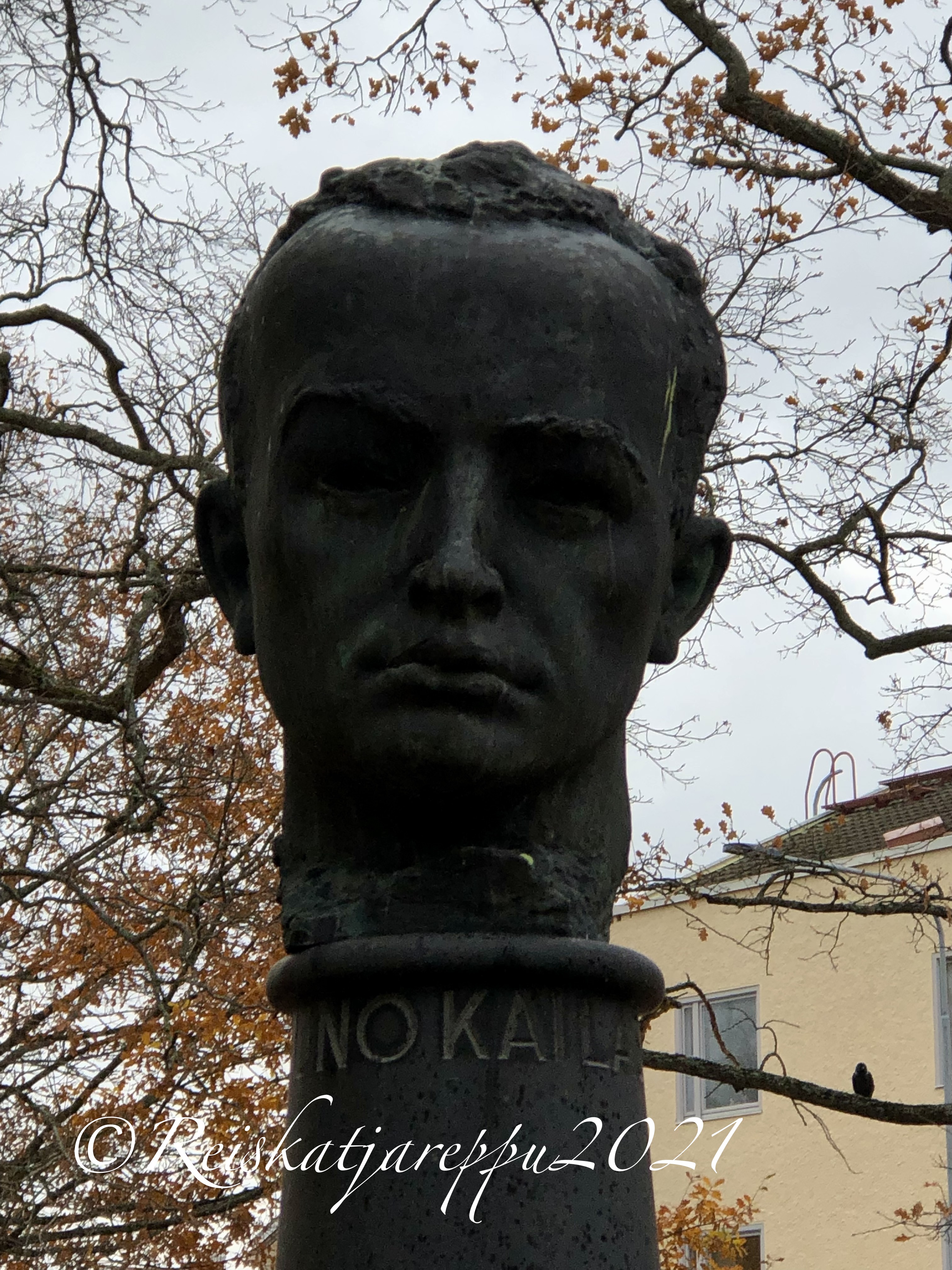 Uuno Kailaan patsas vuodelta 1948, joka on Essi Renvallin veistämä. Entäs tämä herra sitten? Frans Uuno Kailas 1901-1933 oli Heinolassa syntynyt runoilija ja prosaisti.