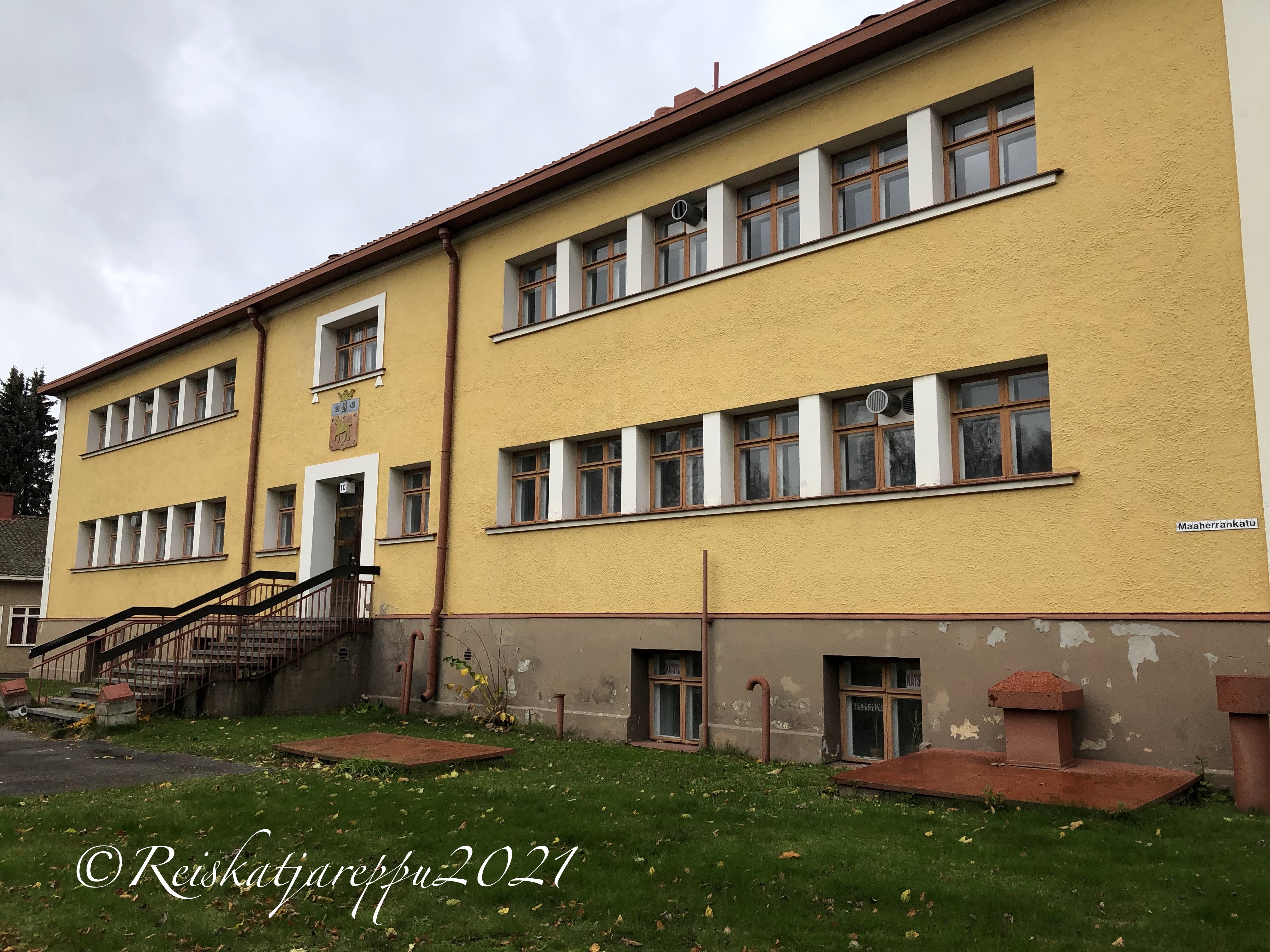 Takana lukio ja edessä A.E.Airon patsas. Noh, kukas tämä sotaherra sitten on. Aleksis Fredrik Airo 1898-1985 (vuoteen 1906 Johansson). Hän oli kenraali, joka vastasi talvi- ja jatkosodan operaatioista.