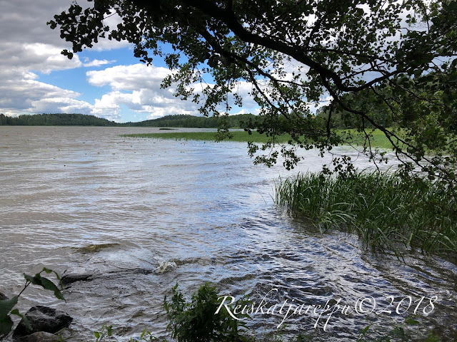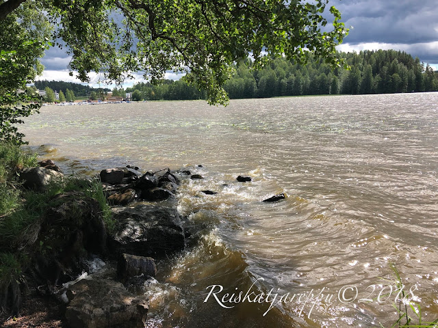 Laskeuduimme alas muistojemme rantaan, joka olikin tuulen tuivertaessa muuttanut väriään sinisestä ruskeaksi. Lintujen laulu hukkui laineiden pärskähtelyyn sekä puiden lehtien havinaan. Aamullinen hiustenlaitto sai uuden muotoilun tuulen puhaltaessa järven selältä. Paikka oli kuitenkin yhtä kaunis tuulisesta säästä huolimatta.