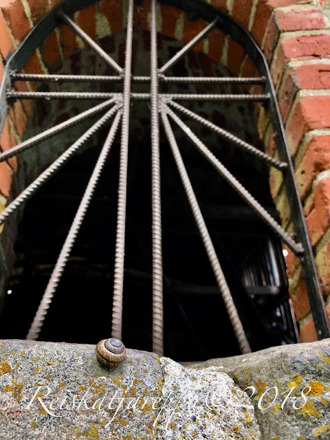 Rauniot olivat nopeasti kierretty ja kuvattu. Raunioista tykkäsit myös isot kotilot, jotka olivat kiipeilleet varjon puolella raunion seinille. Olikohan siellä parempaa evästä kuin maassa, vai miksiköhän sinne kiipesivät?