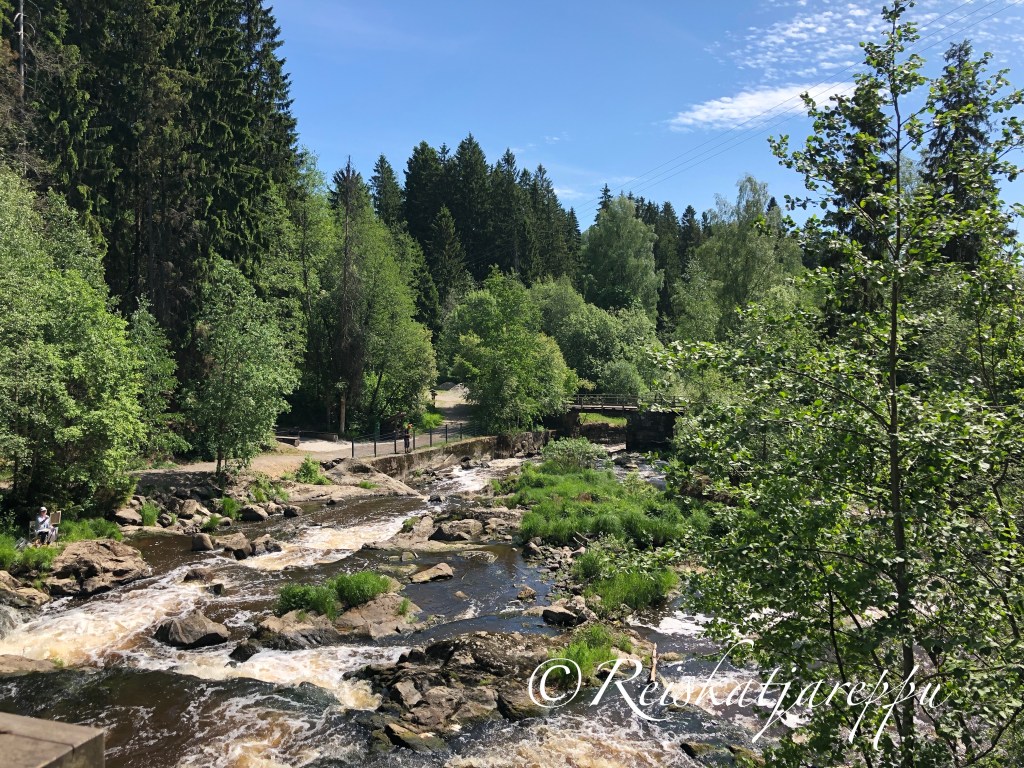 Löysin kiintoisan kuvan, jossa näkyy kosken maisemaa ja vanha maantie sekä voimalaitos. Maisemat ovat muuttuneet sadassa vuodessa paljon. Pellot metsittyneet, rakennukset hävinneet. Kosken patorakennelma hävinnyt. Mutta koski on säilynyt. Tässä on minusta on hyvä näkemys siitä, että miten maisema elää elämän eri vaiheissa eri tavalla eri vuosikymmenillä.