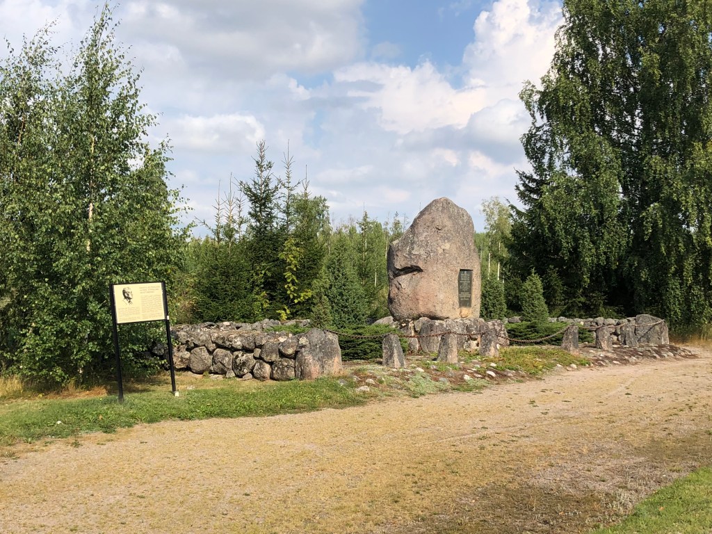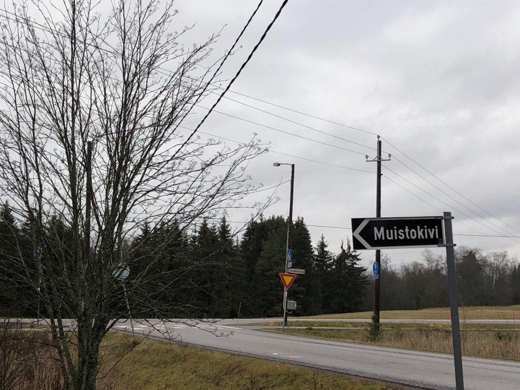 Ajellessamme kohti Mommilaa, tätä muistomerkkiä ei voinut olla huomaamatta. Paikalla on pysähdysalue, jossa merkkikivi sijaitsee.