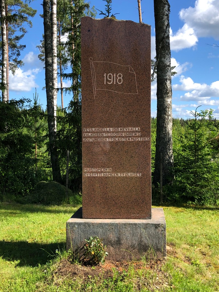 Vesilahdella punaiset ja valkoiset taistelivat 30.3-24.4.1918. Punaisten muistomerkki on pystytetty 1943.