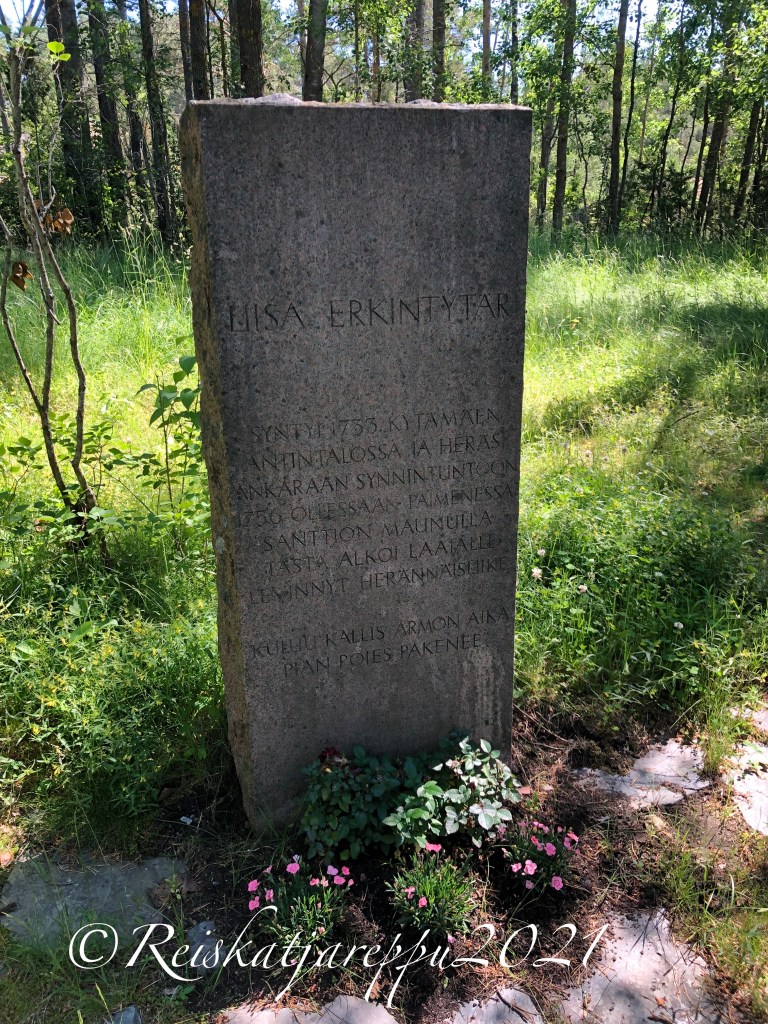 Kivessä teksti ”Liisa Erkintytär syntyi Kytäjämäen Antintalossa ja heräsi ankaraan synnintuntoon 1756 ollessaan paimenessa Santtion Maunulla. Tästä alkoi laajalle levinyt herännäisliike. Kuluu kallis armon aika, pian poies pakenee.”