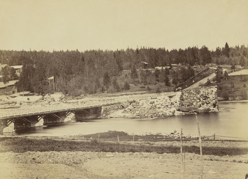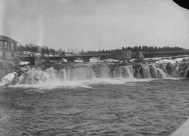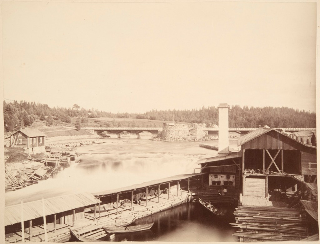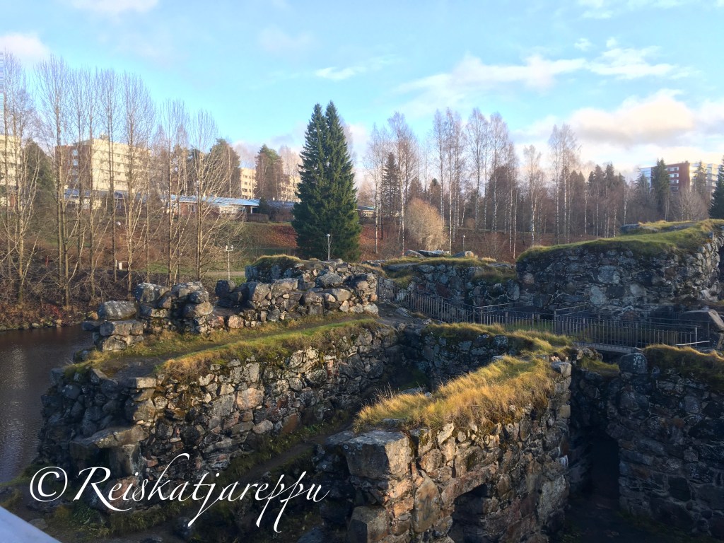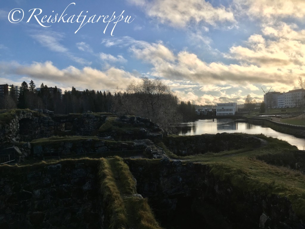 Vanhoista kuvista voi katsella ja miettiä muuttunutta maisemaan linnanraunioiden läheisyydessä. Koski on valjastamattamatta ja puutalojen rantojen varsilla. Maisema on hyvinkin aukea. Onneksi on näitä kuvia säilynyt meidän iloksi. Nämä ovat niin hienoja.