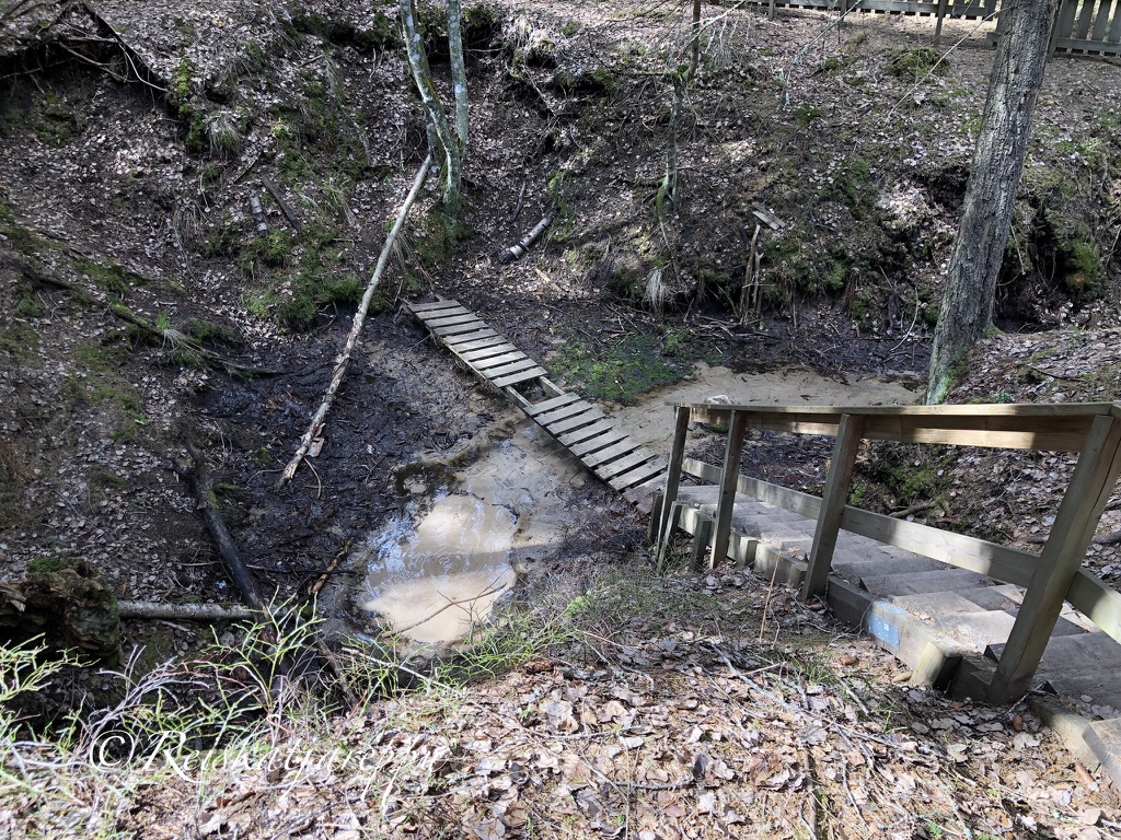 Lähde löytyi helposti, kun lähdettä kiertävä aitat erottui maastosta. Pieni pomppu lähteestä tulevan ojan yli ja siinä se oli. Jo ojan vesi oli tavattoman kirkasta. Lähteelle johdattavat portaat, joten lähdettä voi käydä tutkimassa aivan läheltä.