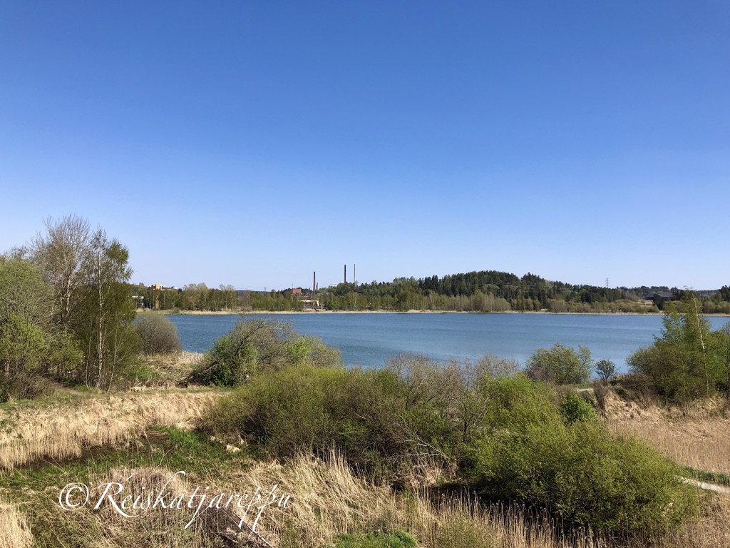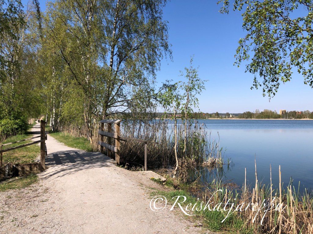 Kannaksen yli polku jatkui altaan vieressä puiden keskellä. Pieni pätkä polun lopusta kulki ajotien vieressä, kunnes saavuttiin lähtöpaikalle. Autoja ja ihmisiä oli runsaasti edelleen lähtöpaikan liepeillä. Sekä musiikki soi. Toivotaan, ettei tavaksi tule ihmisten ilonpito kovalla volyymilla näille kivoille paikoille. Hienoa, että ihmiset rentoutuvat ja nauttivat luonnosta, mutta ehkä bilettäminen voisi olla vaikka enempi kaupunki ympäristöön sopivampi juttu.