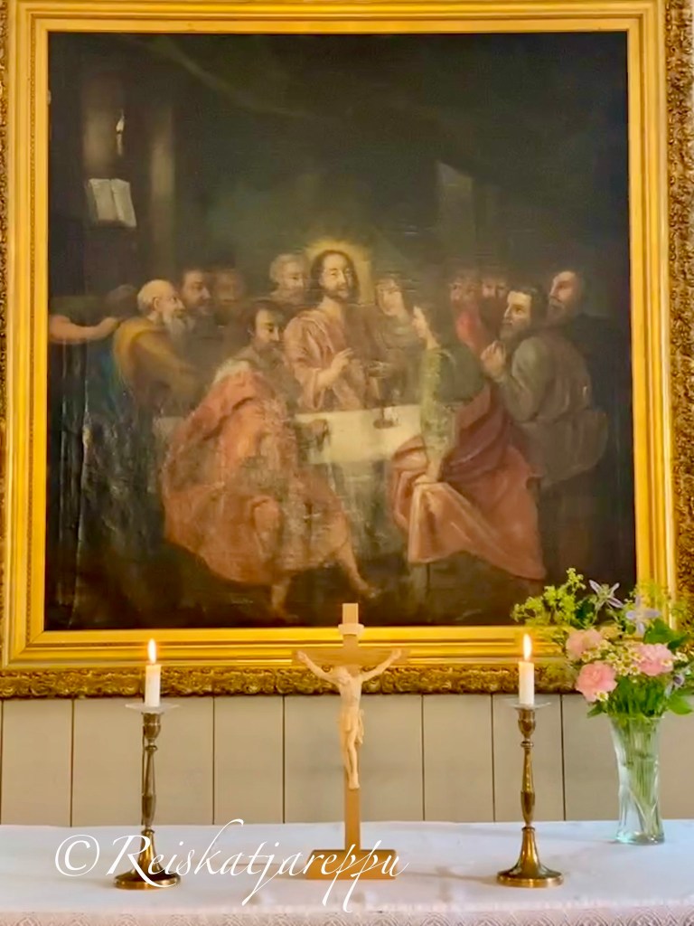 Kirkon alttaritaulu on ostettu vuonna 1737, joka on P. P. Rubensin teoksesta ”Ensimmäinen ehtoollinen” Suomessa tehty jäljennös.