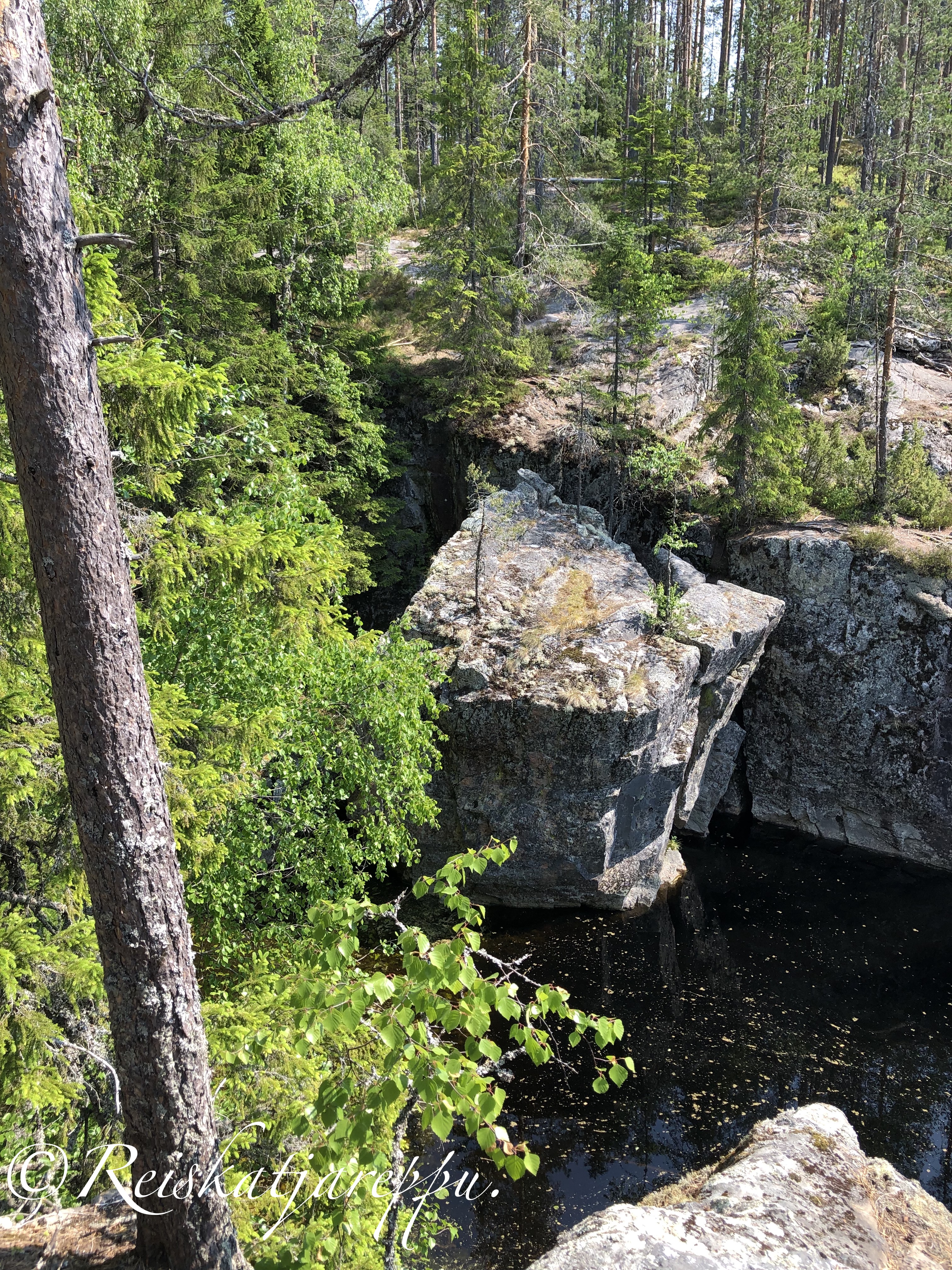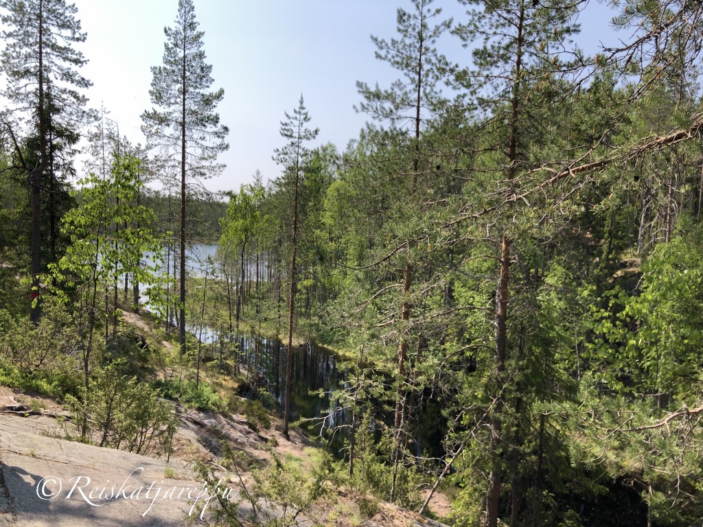 Kuopion lomalla yritin etsiä kaikki mahdolliset käymättömät paikat, jonne sain vain kaverin mukaan ja käynti sopi aikatauluihin. Tällä kertaa lähdimme nuoruuden ystäväni Arjan kanssa käymään Seinävuoren Rotkolaaksossa, joka sijaitsee noin 55 kilometrin päässä Kuopiosta. Sää oli kesäisen helteinen, joten päätimme rauhallisesti kulkea reitin ja nauttia vain luonnon rauhasta hiljakseen kävellen. Loppuhuipennuksena olivat kierroksen päätyttyä eväiden syönti ja makkaranpaisto nuotiolla suurenmoisella laavulla.