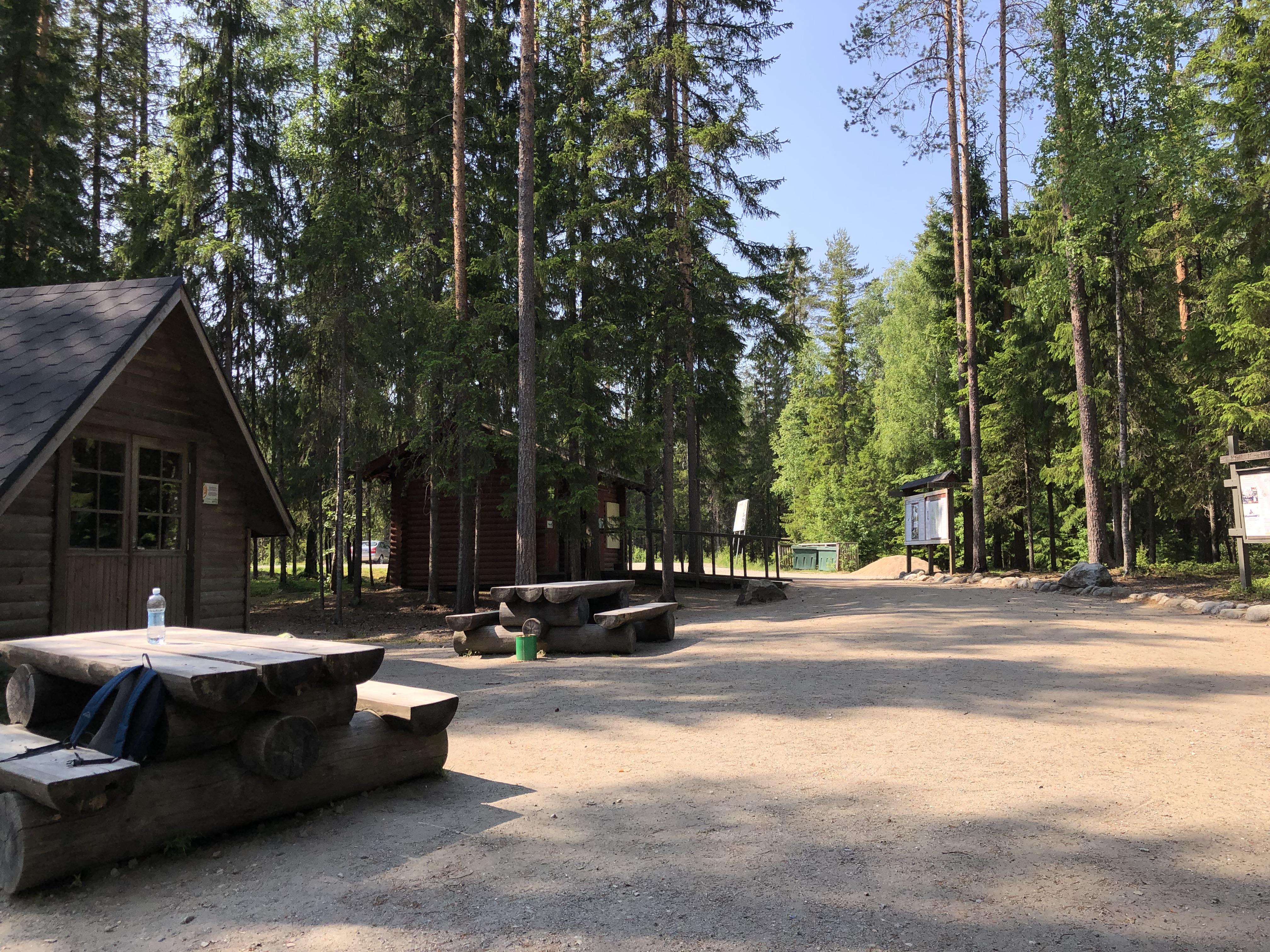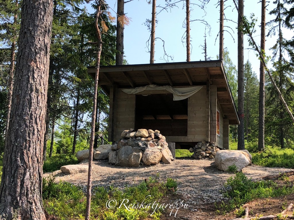 Paikalle saavuttaessa vastassa oli tilava parkkipaikka ja hyvä retkeilyä varten oleva varustelutaso: grillikota, katollinen nuotiopaikka, pöytiä, penkkejä sekä puuvarasto huusseineen.