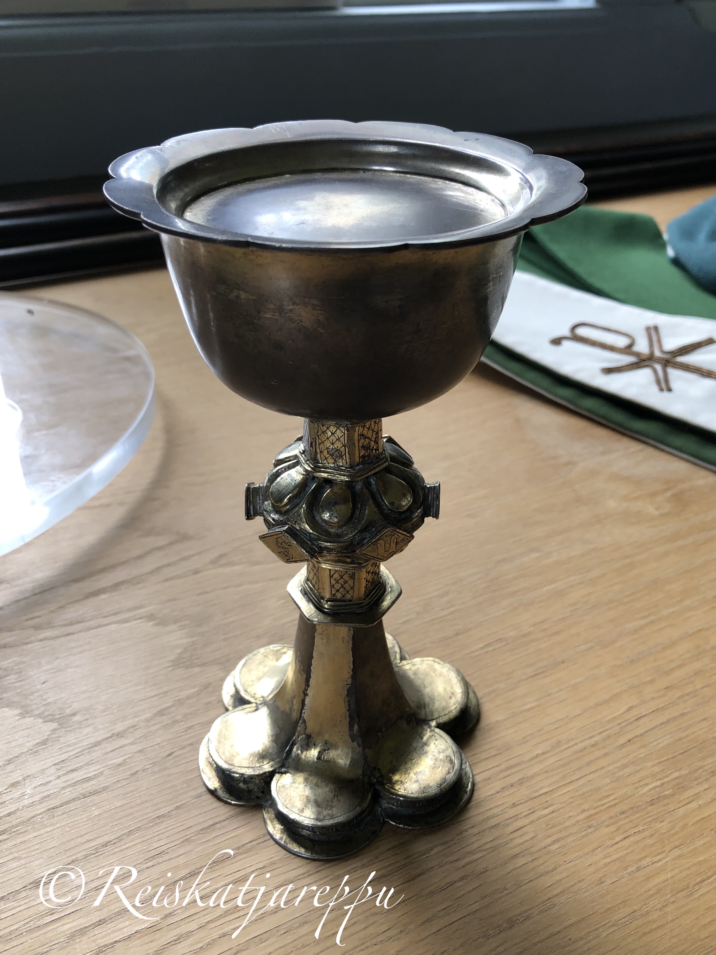 Kirkon vanhin esine on 1500-luvulla valmistettu ehtoolliskalkki eli ehtoollismalja, joka ei ole näytillä, vaan sitä säilytetään lukkojen takana ja ystävällinen pastori näytti sen minulle.