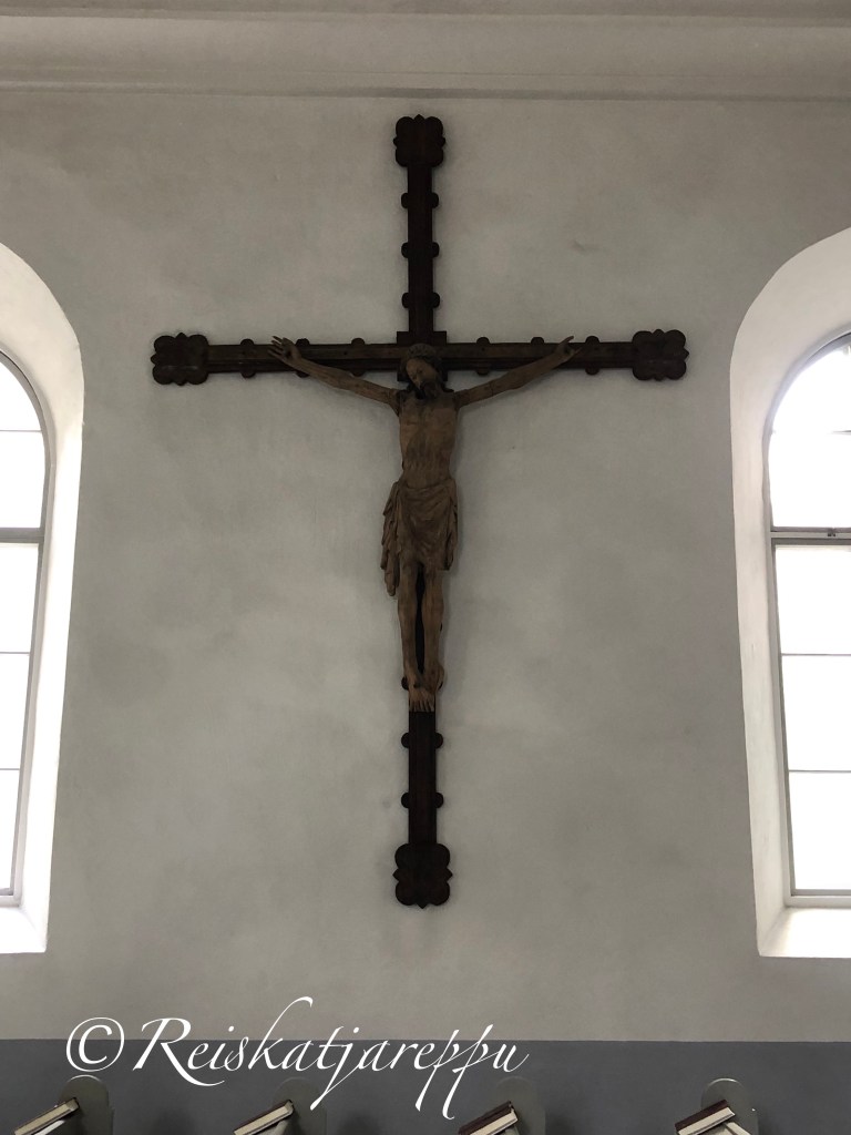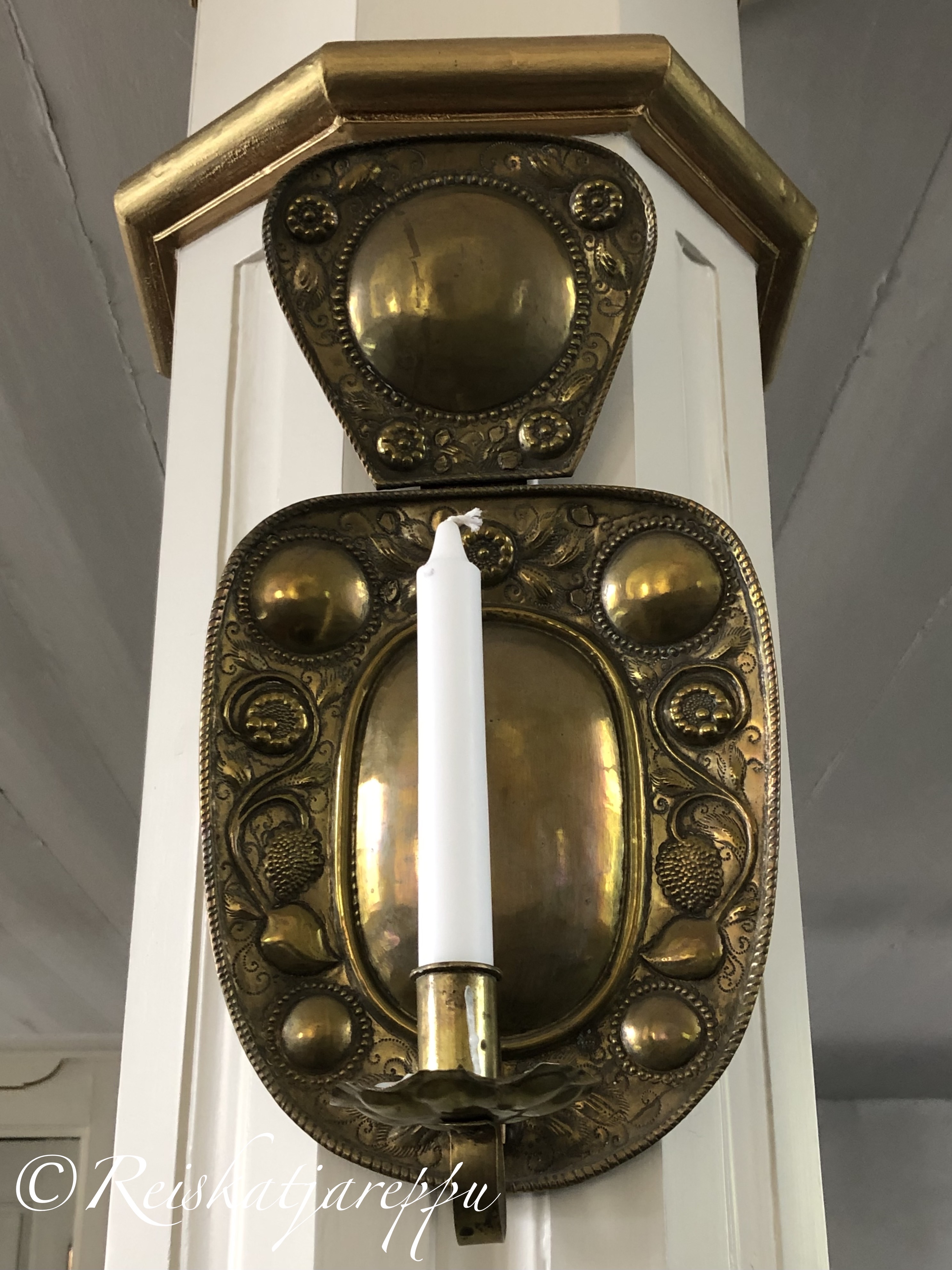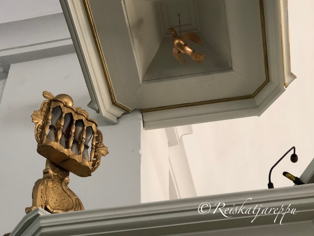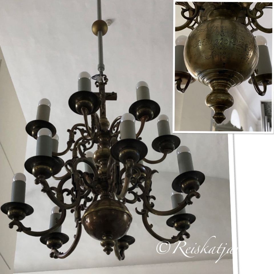 Täällä on hienot kattokruunut, jotka ovat sähköistetytty. Valaisimien alaosista löytyy vuosilukuja, vasemman puoleisesta vuosi 1841 ja oikeanpuoleisesta vuosi 1747 sekä muuta tekstiä, mitä en osannut tulkita. Samoin hieno ristiinnaulitun koriste on lampun yläosassa.