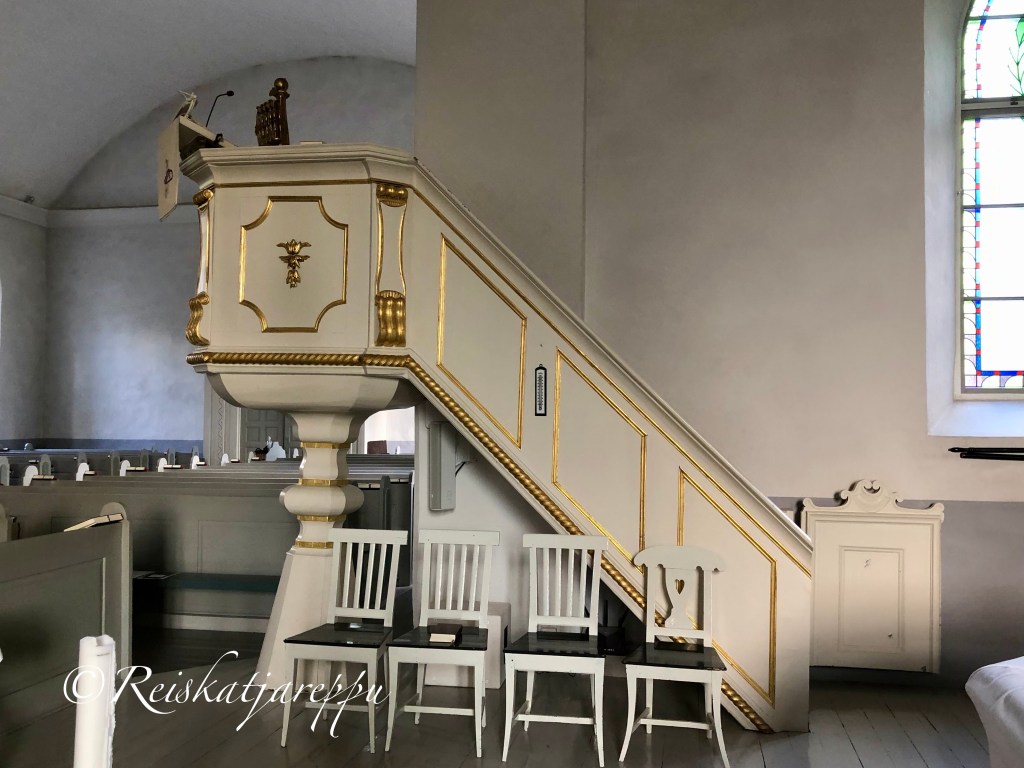 Kaunis saarnatuoli on entisestä vuonna 1640 rakennetusta puukirkosta.