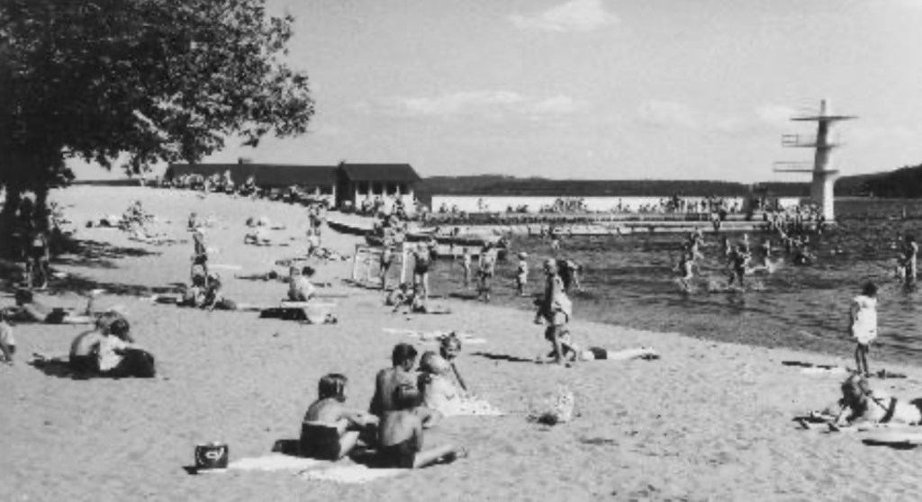Tuo Keilinniemen kivipolku on käsittääkseni aikoinaan johtanut jonkunlaisille pukukopeille. Pukukopit olivat siis siinä nykyisen kävelytien laidassa ja tuota tietä pitkin pääsi vissiin jalkoja hiekkaamatta sitten järvestä pukukopeille. Tästä olen jossain nähnyt vanhan valokuvankin, mutta en sitä nyt tähän hätään enää mistään netin syövereistä löytänyt.