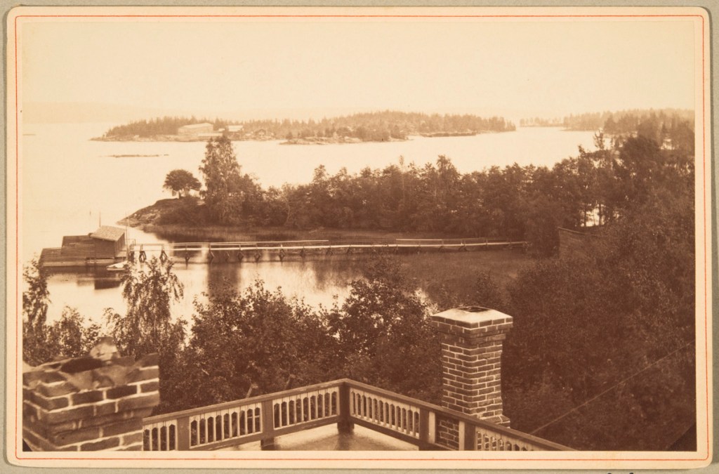 Näkymä Väinölänniemellä sijainneen Teatterihuoneen katolta, taustalla Varvisaari ja Rönö.
