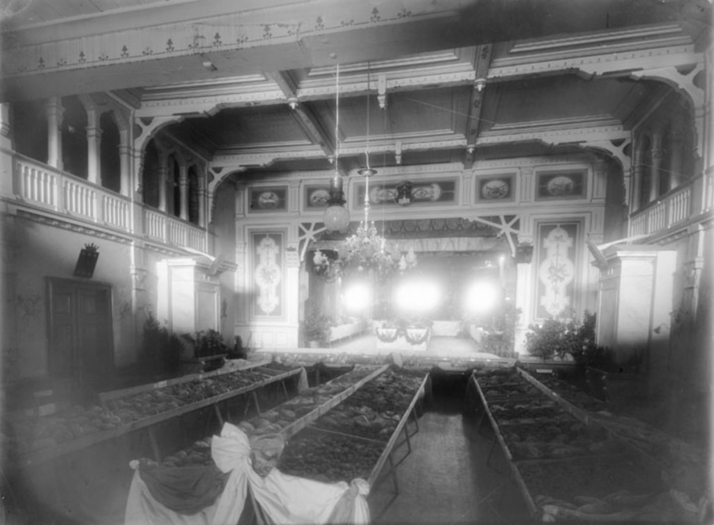 Väinölänniemen teatteritalon sali maatalousnäyttelyn aikana 1902.