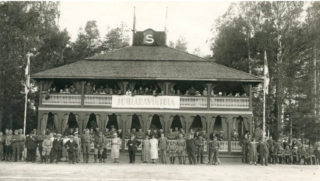 Ravintolarakennus Väinölänniemen urheilukentällä. Suojeluskuntajuhlat 1920-1929.