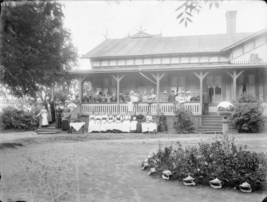 Väinölänniemen kylpylä ja kylpyvieraat, sekä henkilökunta.