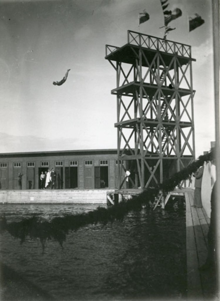 Viimeisen keisarin Nikolai II aikana rakennettiin tämä hieno alapuolisessa kuvassa näkyvä 25 metrin radoilla ja 10 metrin hyppytornilla varustettu uimala vuonna 1914. Uimalan sääntöjen mukaan tätä käyttivät vain miehet ja pojat. Vasta vuonna 1946 sallittiin naisille lupa käyttää uimalaa. Uimala purettiin huonokuntoisena vuonna 1950.