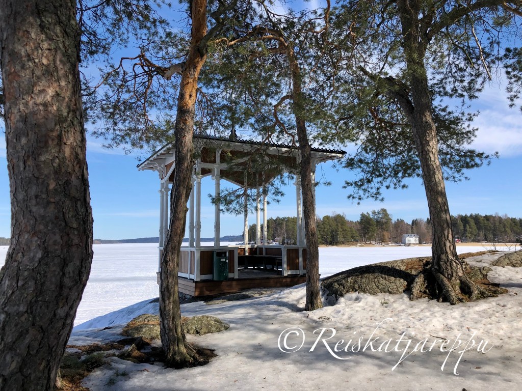 Tie kiertää ja sillan yli voi poiketa tutustumaan Rönön saareen. Rönön silta on rakennettu vuonna 1988. Aiemmin asukkaat kulkivat veneillä tai talvella jäätietä pitkin koteihinsa. Jos ei huvita matkata Rönöön voi pysähtyä seuraavalle huvimajalle tai siinä olevalle viereiselle uimarannalle.