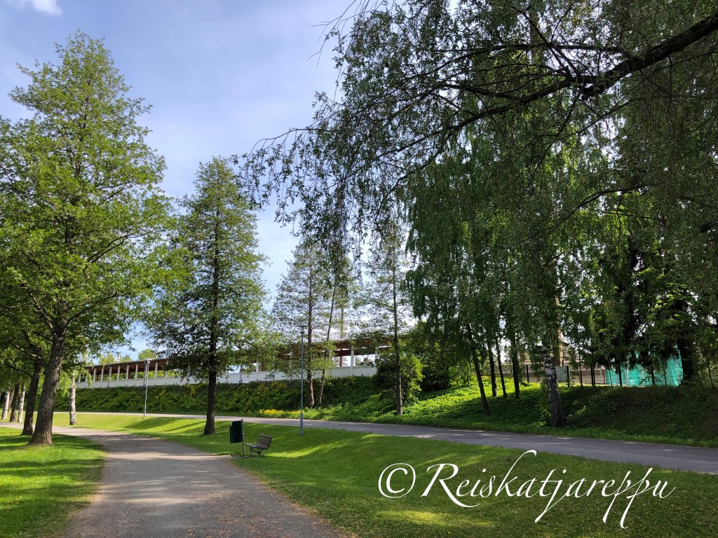 Rantatietä on kiva kävellä ja oikealle jää urheilustadion.