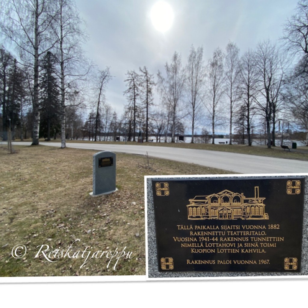 Tenniskenttien luona olevan parkkipaikan kupeessa on teatteritalon eli Lotta hovin muistomerkki.