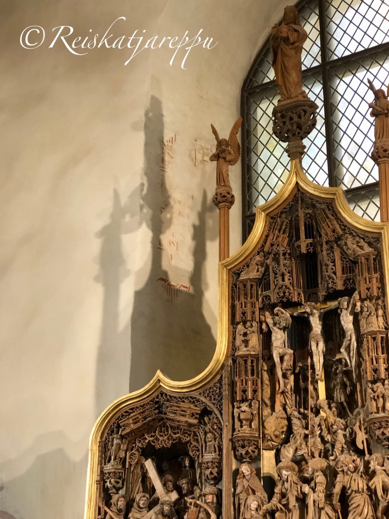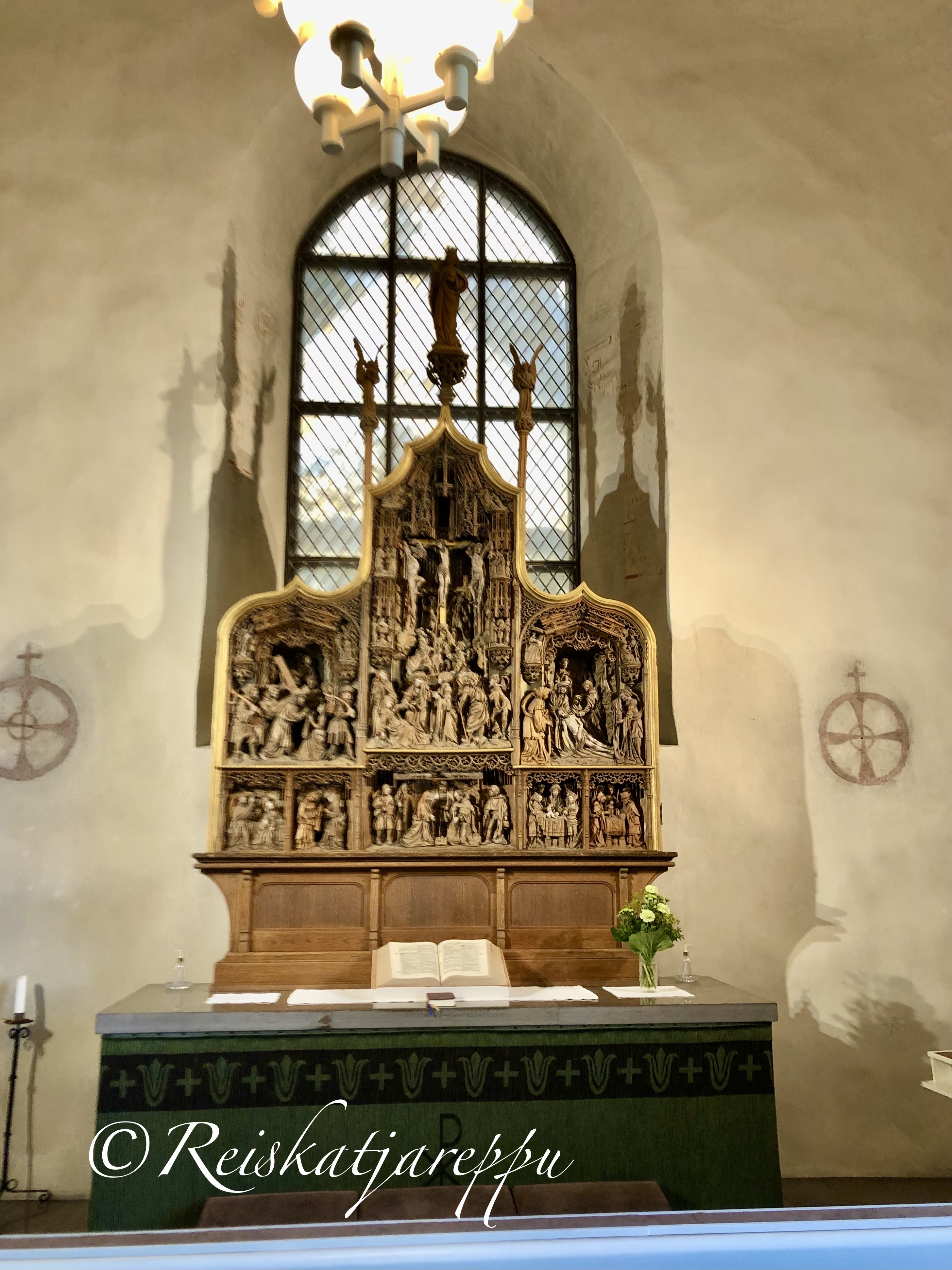 Kirkon ehdottomasti hienoin ja vaikuttavin esine on alttarin päällä seisova suuri kolmiosainen Antwerpenissä veistetty alttarikaappi. Aiheena siinä on Jeesuksen lapsuus-aihe ja kärsimysaihe. Alttarikaappi on valmistutunut 1510- tai 1520-luvulla, sitä täydennettiin ja se sai lisäkoristelua vuonna 1933.
