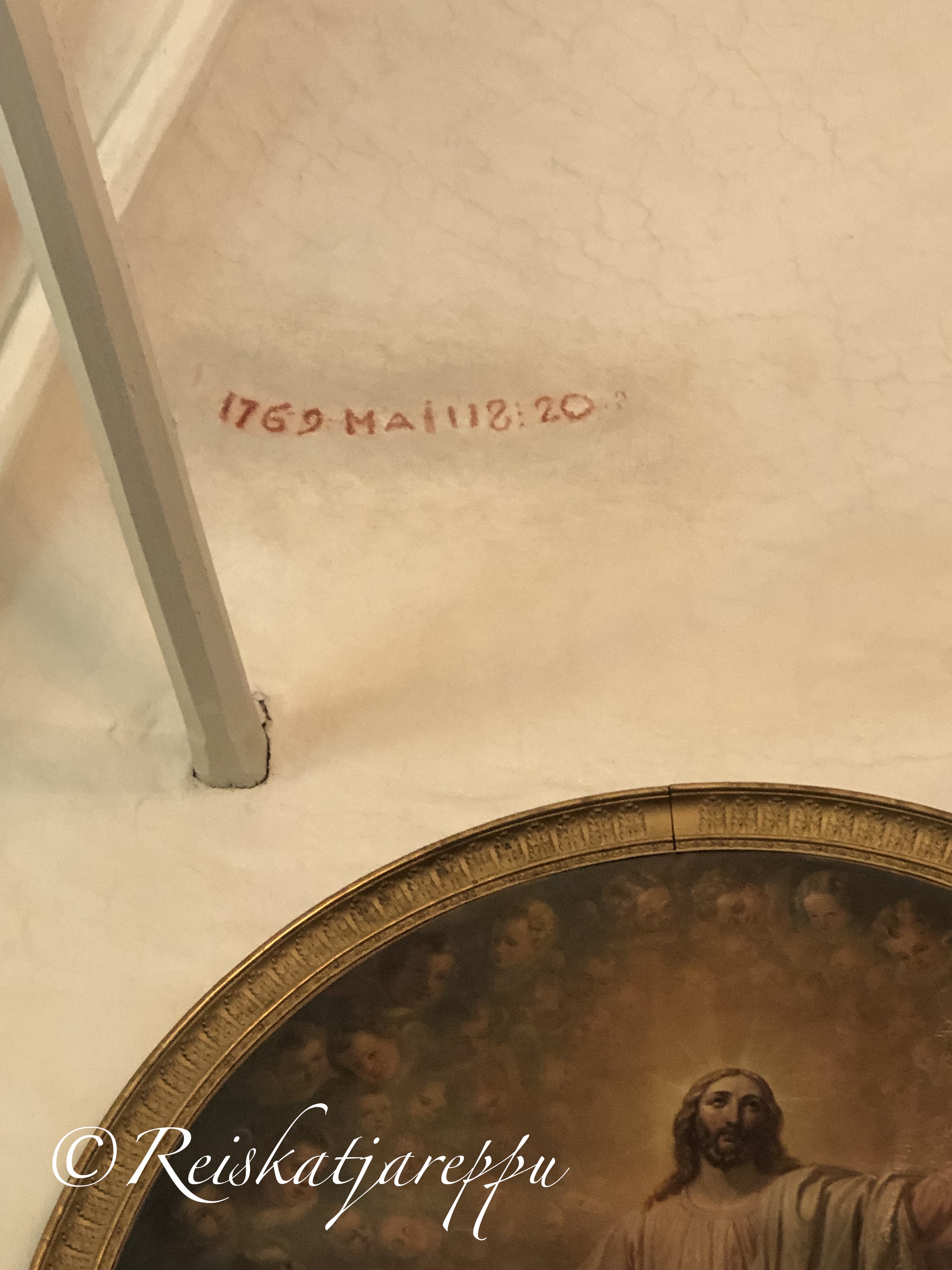 Raamatunlauseita on maalattu luultavasti vuonna 1769. Ikkunan syvennyksissä on ruotsalaisia virren sanoja.