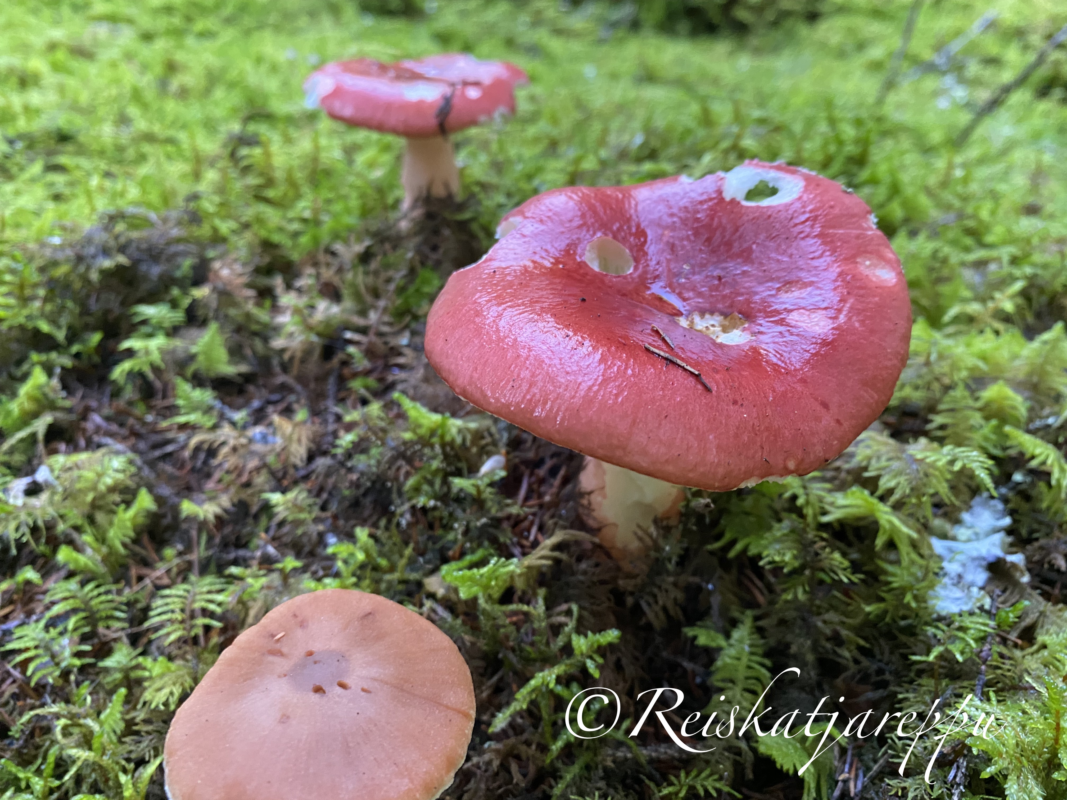 Kosteudesta johtuen sammalikosta oli runsaasti sieniä. Punalakkeja, rusehtavia ja jopa kirkkaan oranssinkeltaista sieniä pilkotti sammaleenvihreää vasten.