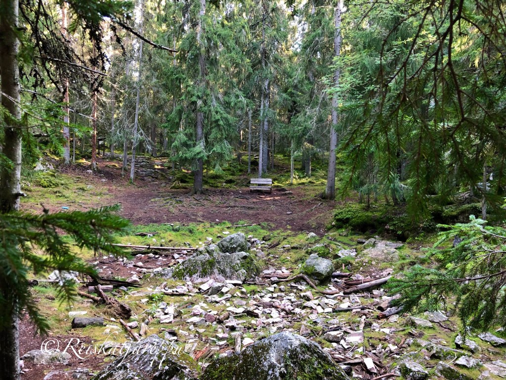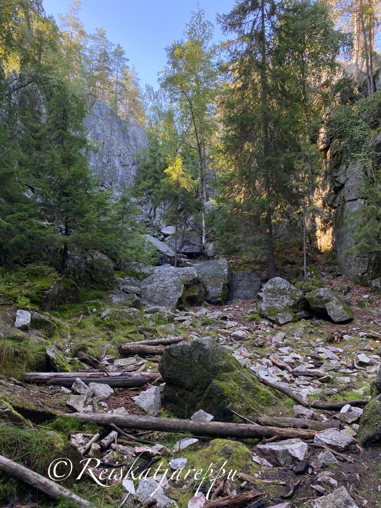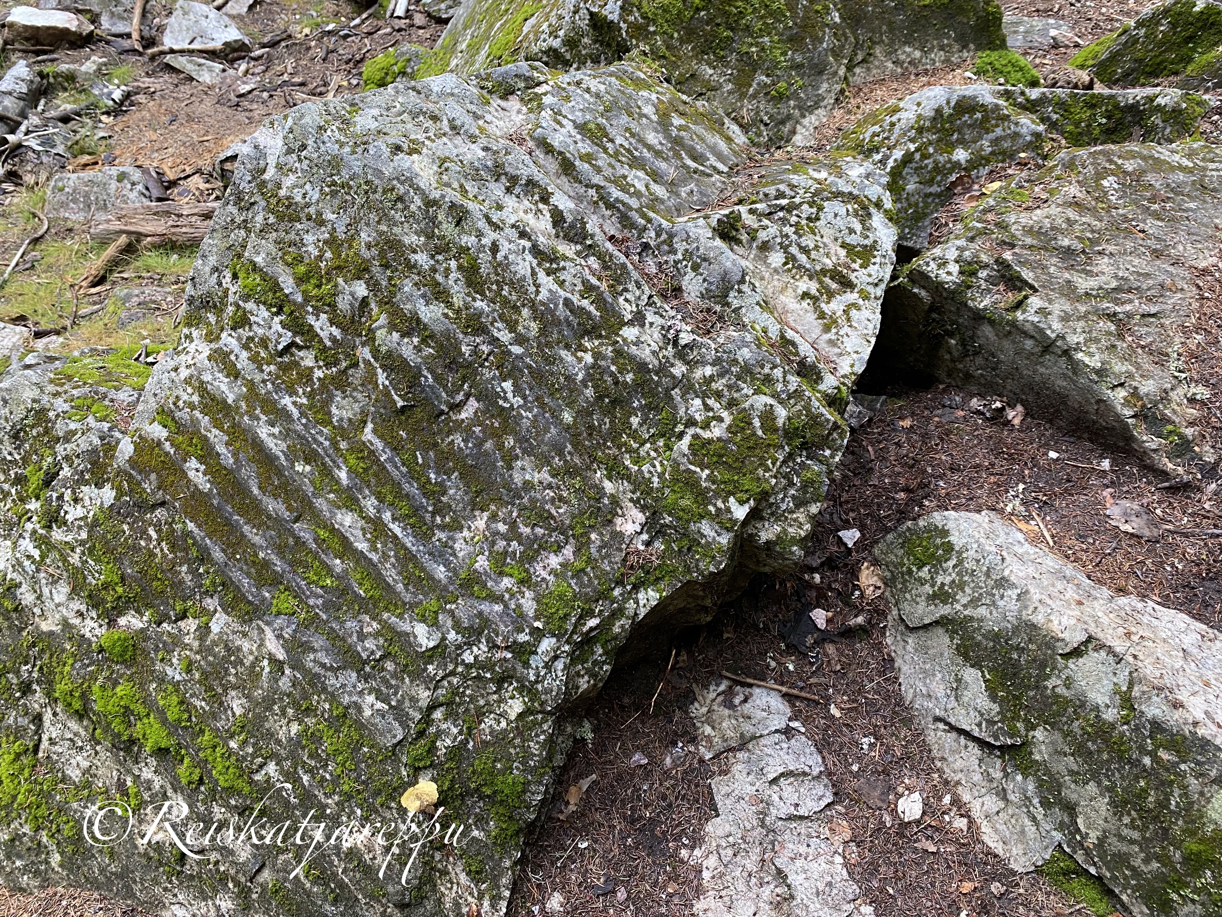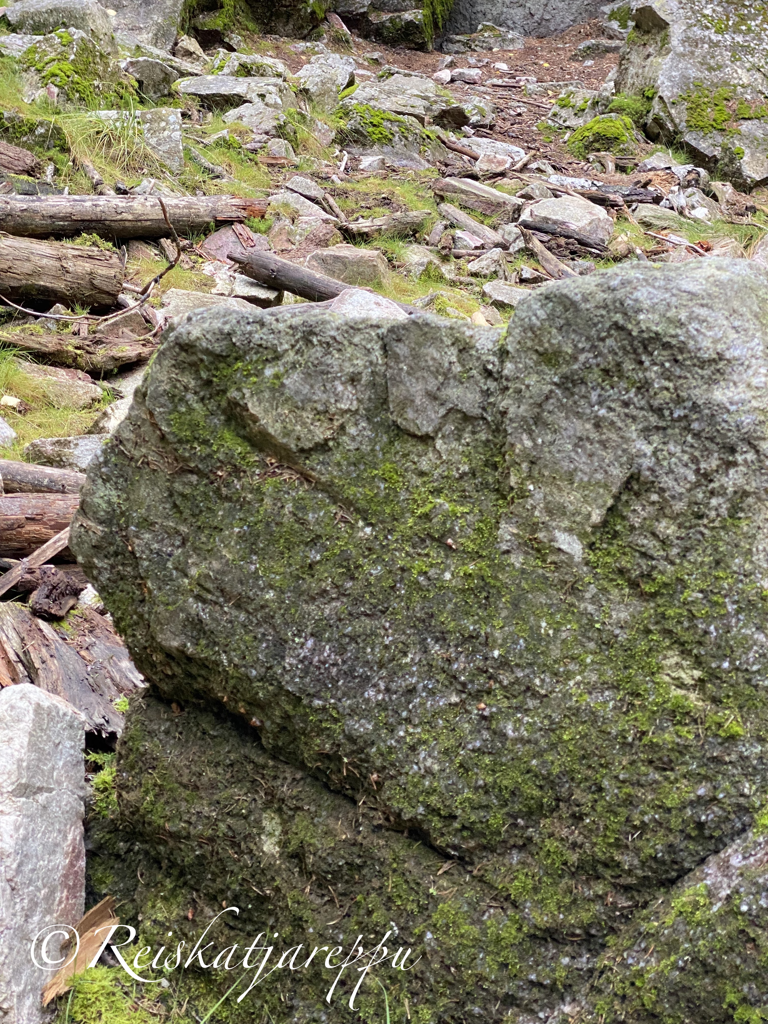 Komeat kalliot nousivat korkealle ja kallioiden välistä kivilohkareet olivat vyöryneet kohti maata. Alue on pyöreähkö, lohkareiden edessä on sateiden ja korkeiden vesien aikaan lammikko. Näkyi siinä olevan myös nuotion jäänteet.