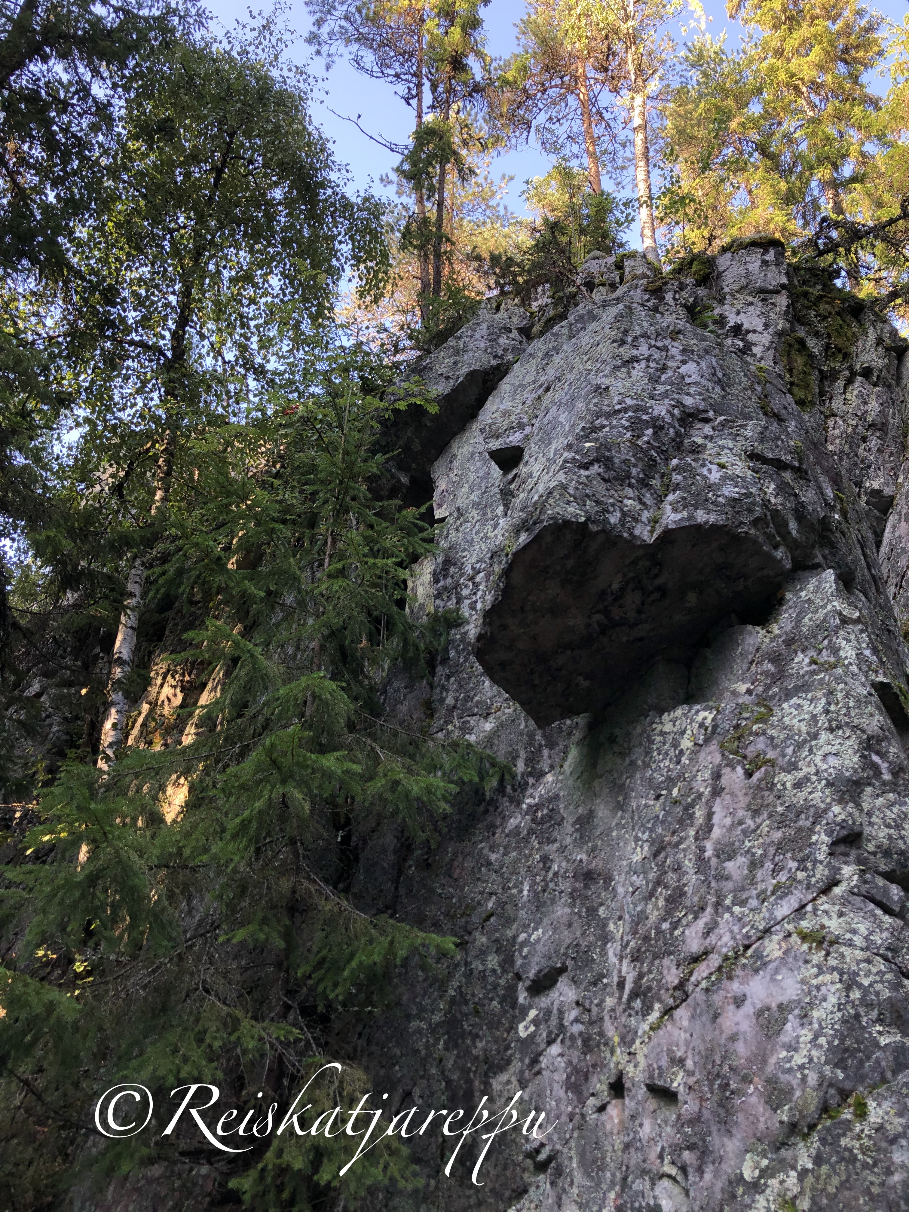 Tutkailimme katseilla kohti korkeuksiin ja kävimme alkupään lohkareita ihailemassa. Yhdessä ulokekivessä olin näkeväni kasvojen profiilin, joten suuntasin sitä kuvaamaan, mutta lähestyessäni sitä se muutti muotoaan. Voihan siinä edelleen nenän nähdä.