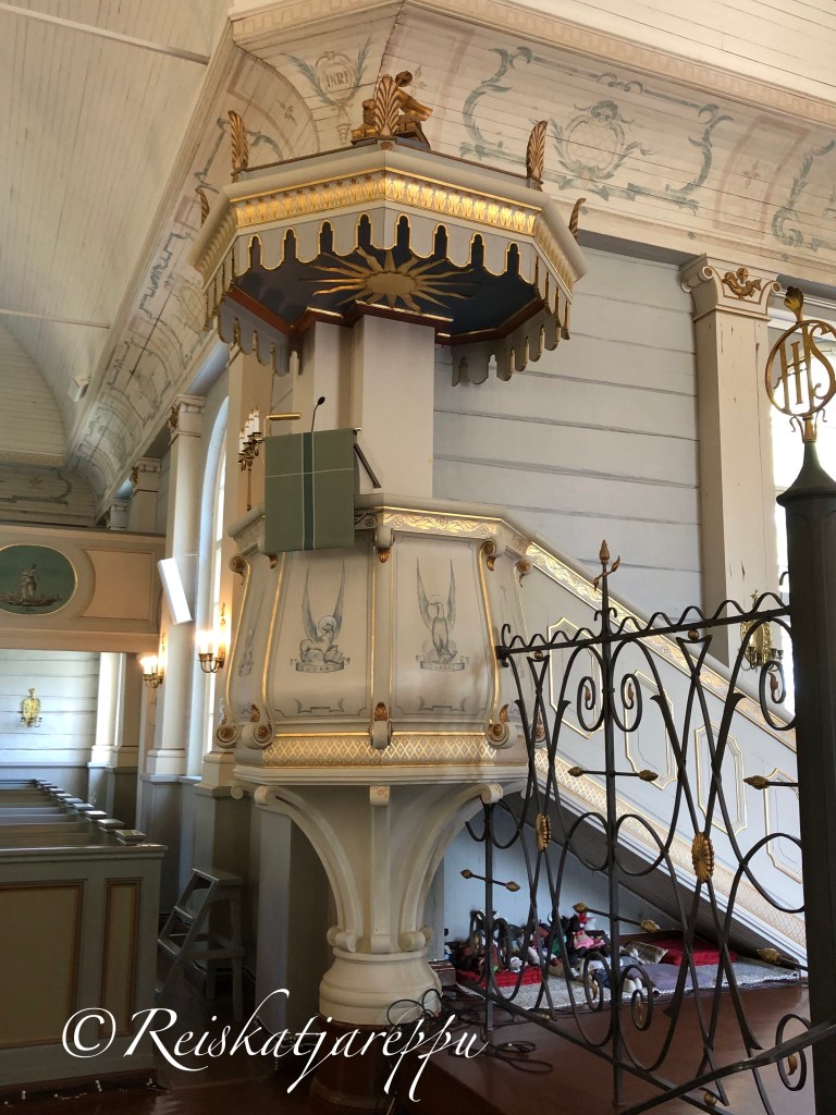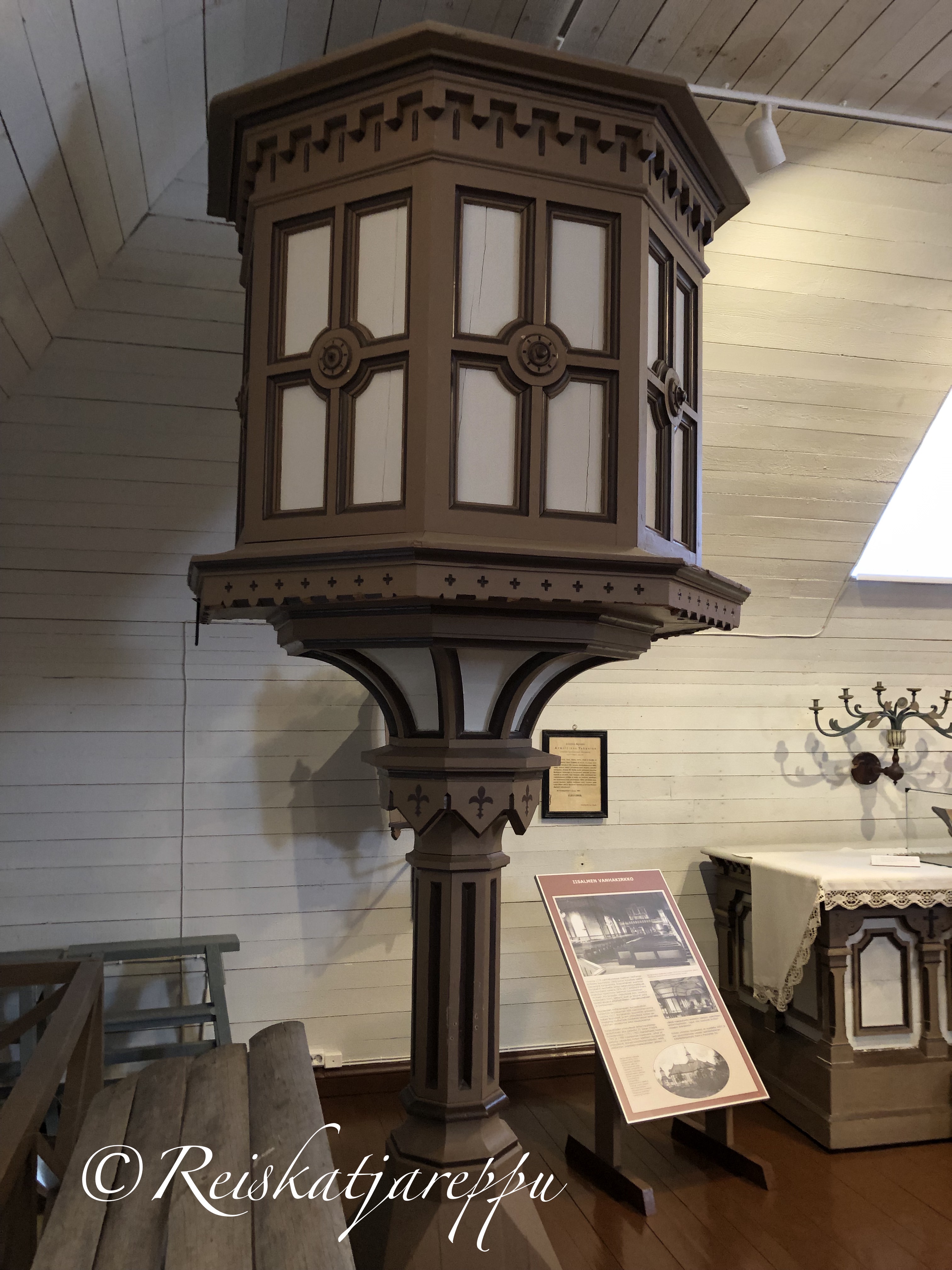 Arkkitehti Sjöströmin suunnittelemat saarnatuoli, alttari ja numerotaulu ovat tästä kirkosta vuodelta 1877-1927 väliseltä ajalta. Ne siirrettiin kirkkomuseoon uusien tieltä.