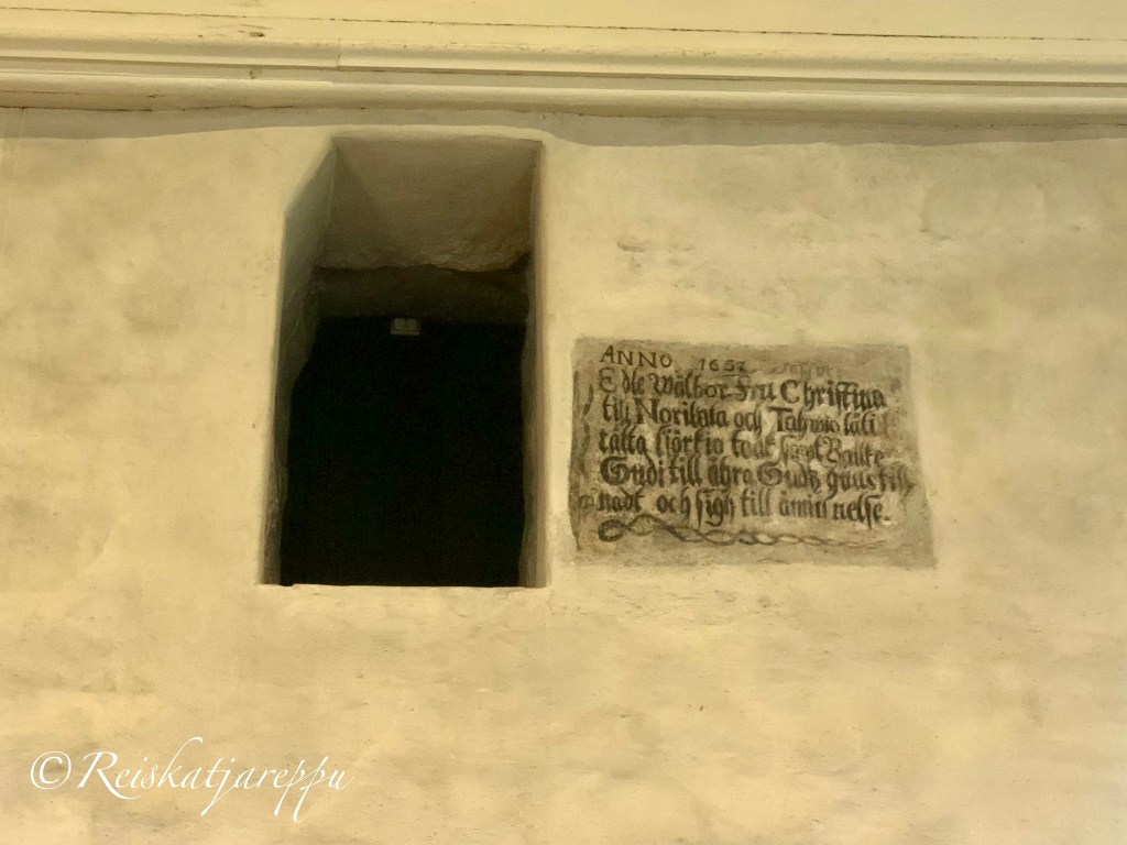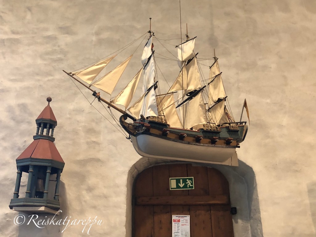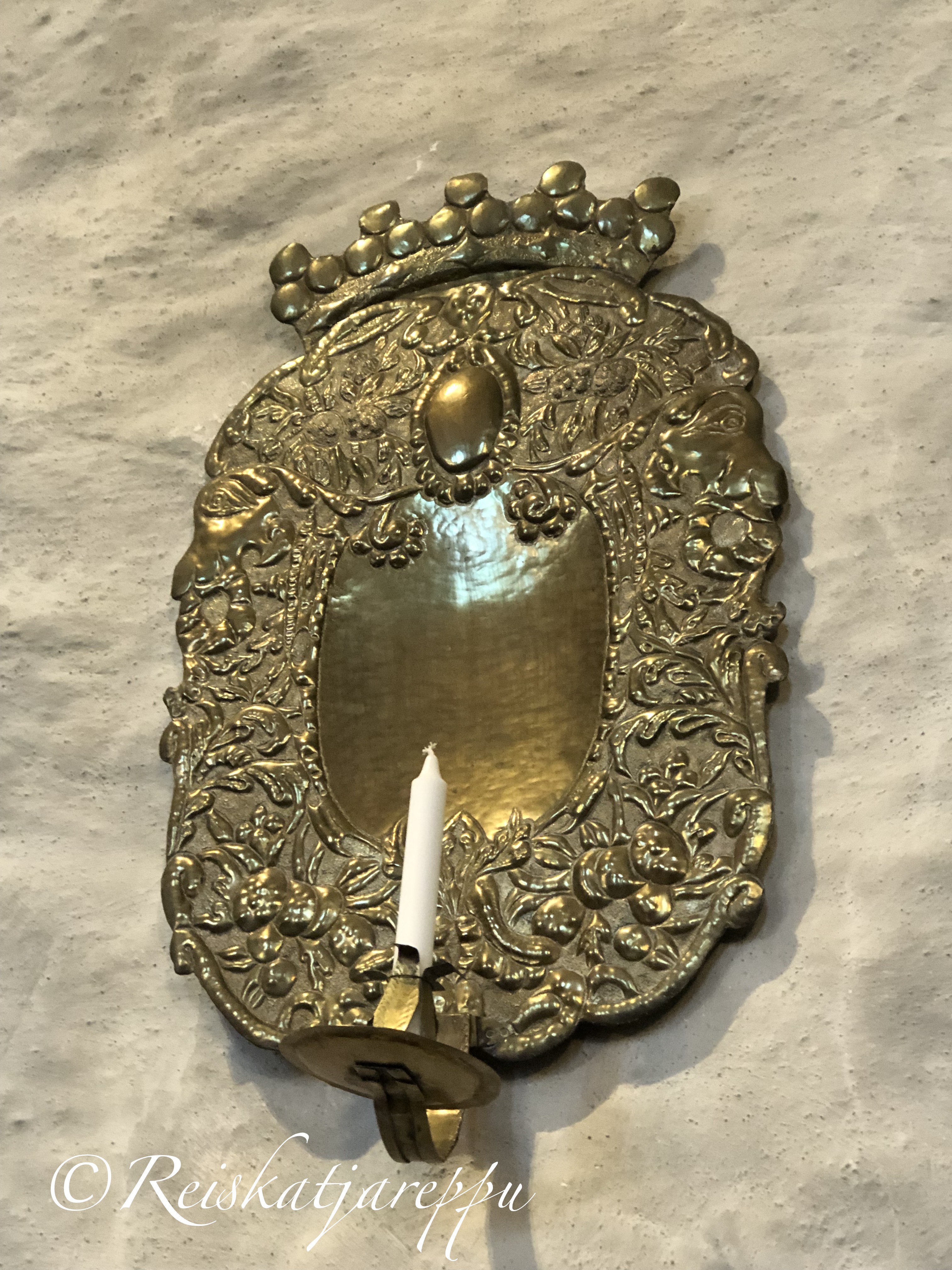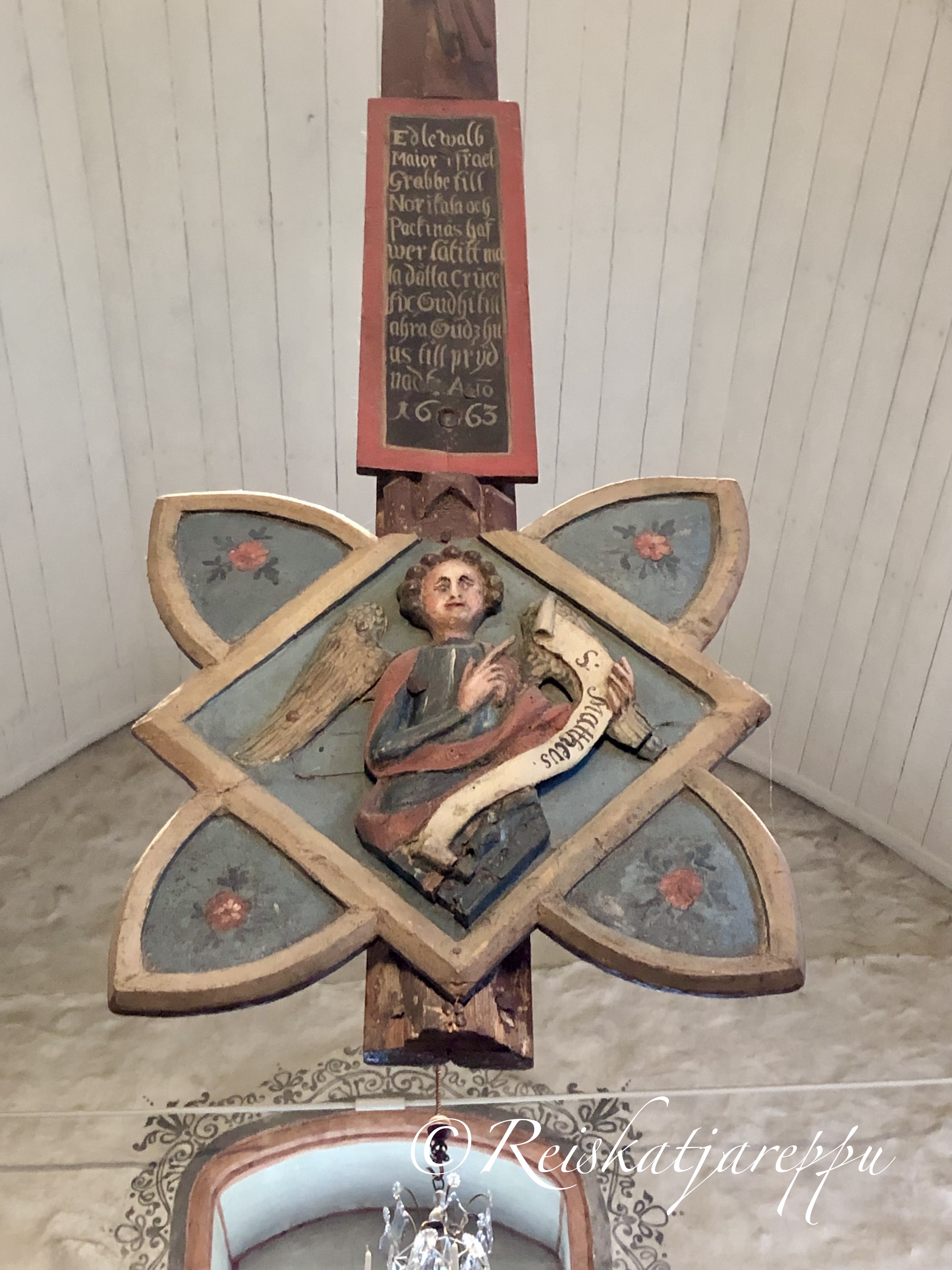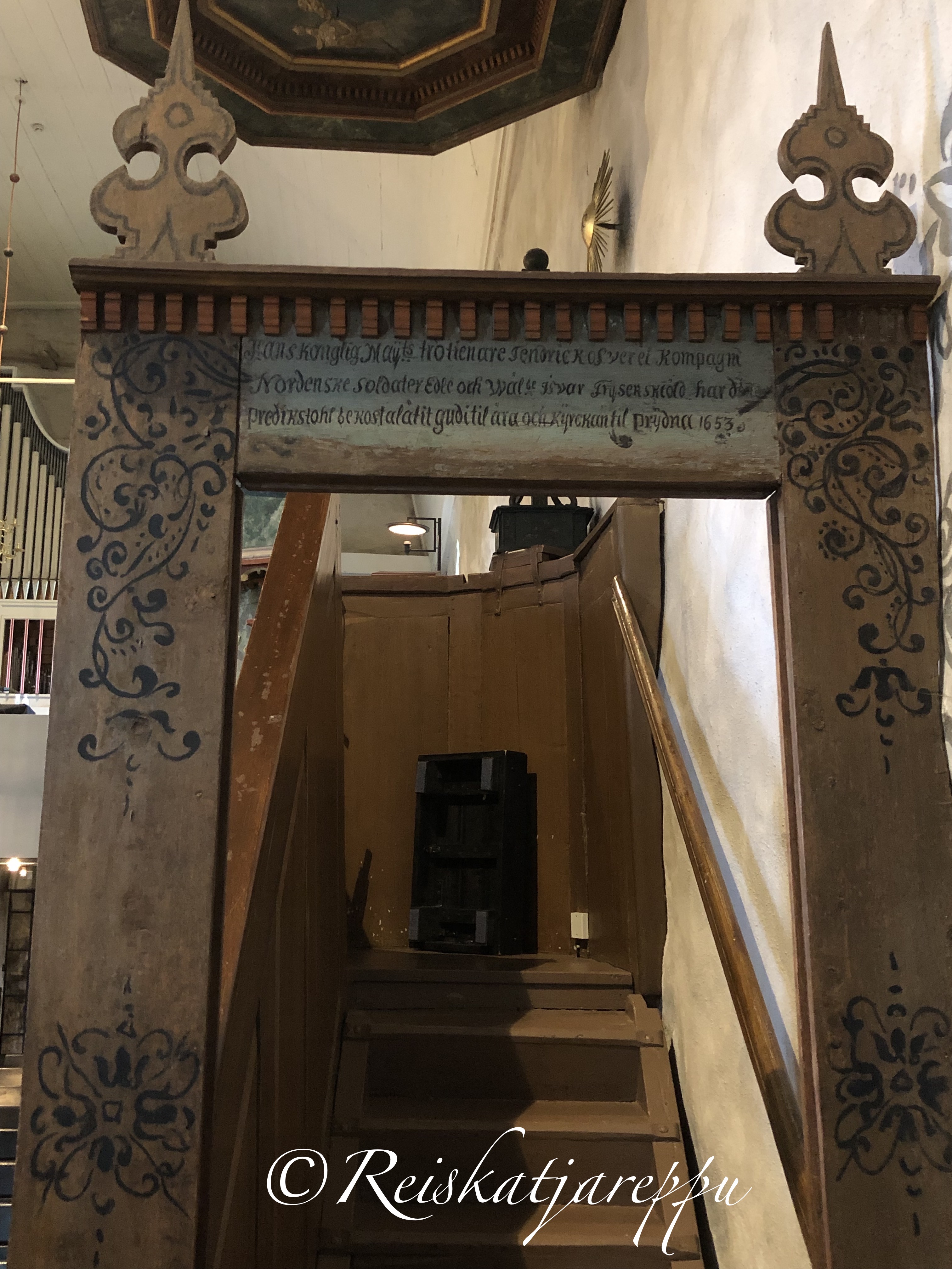 Kirkko on sisältä mukavan ja viihtyisän oloinen. Ainut mikä haittaa bloggarin silmää, on urkulehterin rakenne, joka pistää heti silmään sisään tultaessa. Musta, matala, teräksinen ja tylsännäköinen. Urkulehtereitä on rakennettu moneen kirkkoon jälkeenpäin, mutta taidokkaasti ja hyvin kirkon tyyliin sopivasti. Jostakin aiemmasta puisesta lehteristä maalatut apostolien kuvat ovat urkulehterin portaiden takana seinällä, vähän piilossa katseilta.