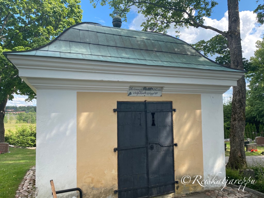 Hautausmaalla kirkon takana on Matts Cavenin ja hänen perheensä vanha hautakappeli vuodelta 1814.