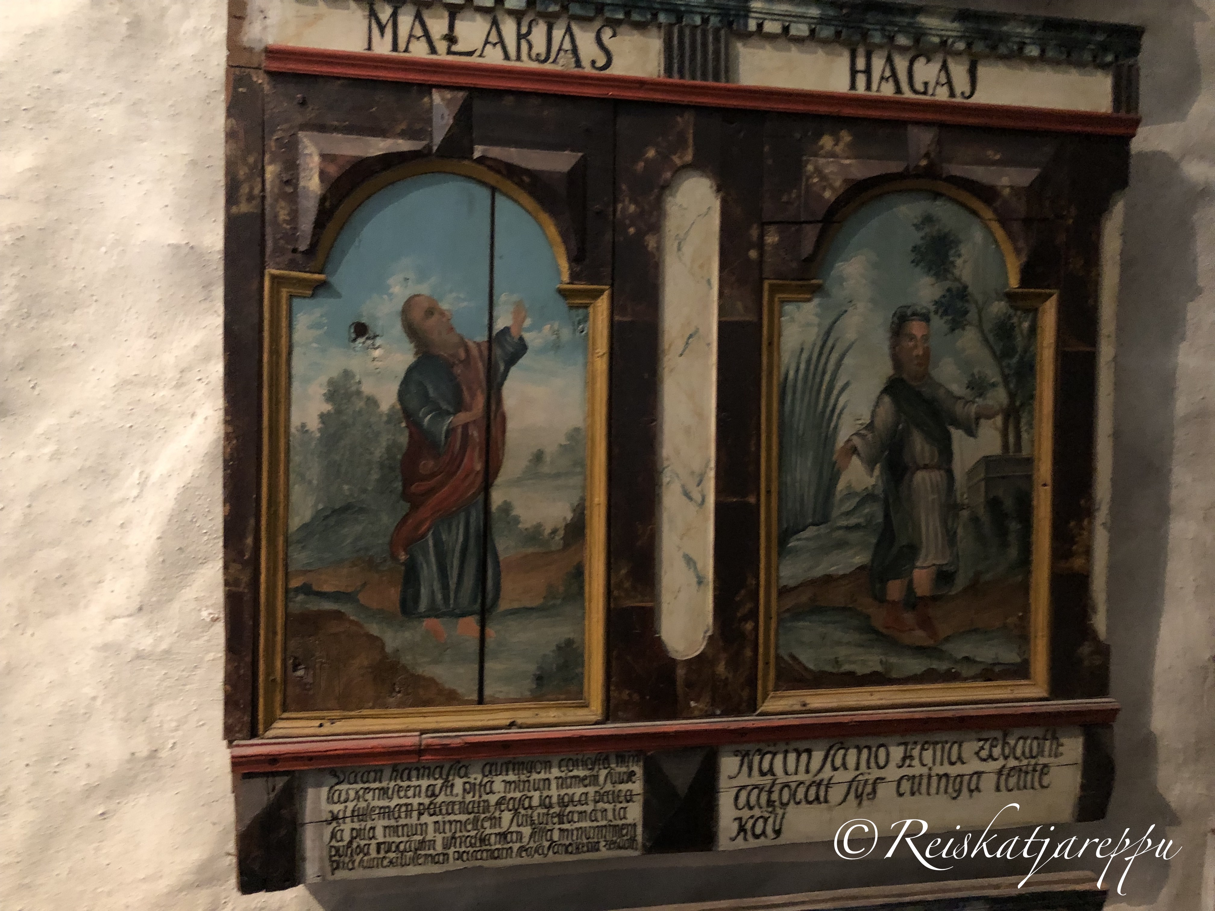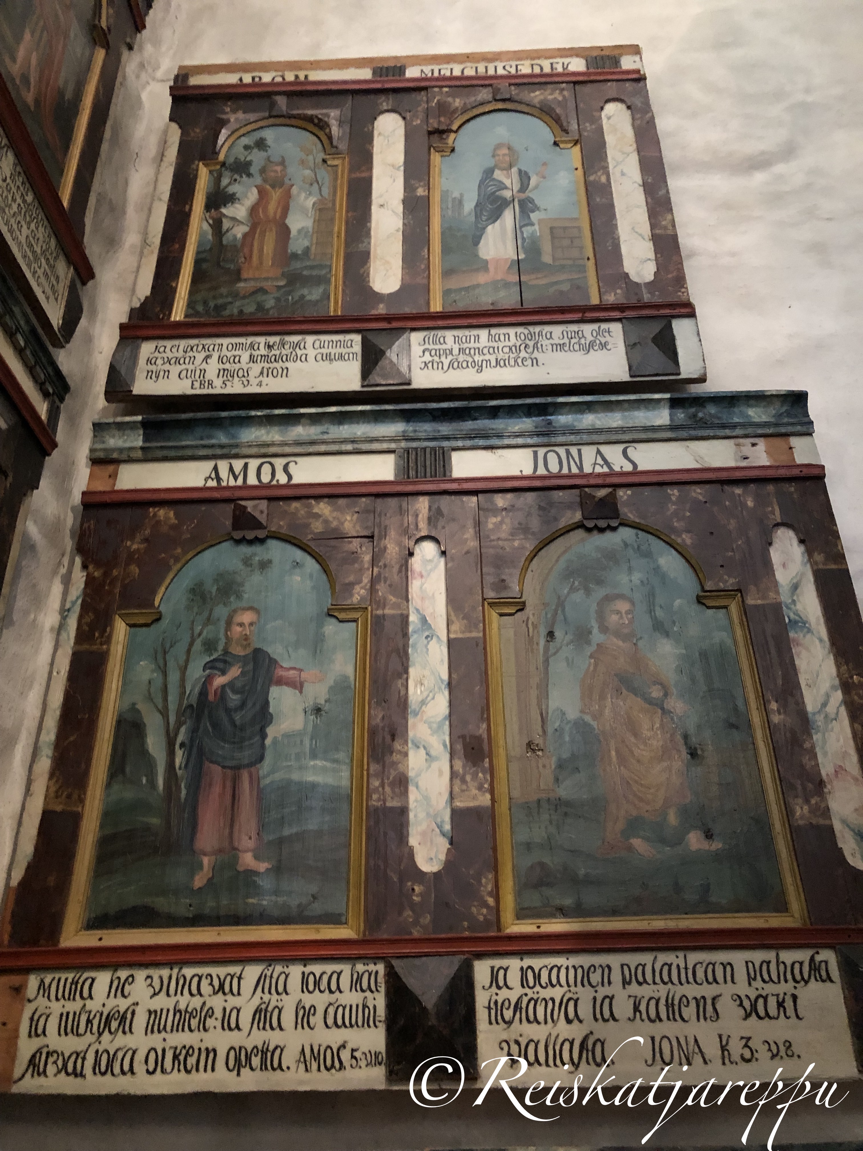Urkulehterille noustessa portaiden takana seinällä olivat nämä kauniit profeetoista kertovat maalaukset.